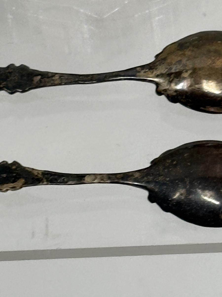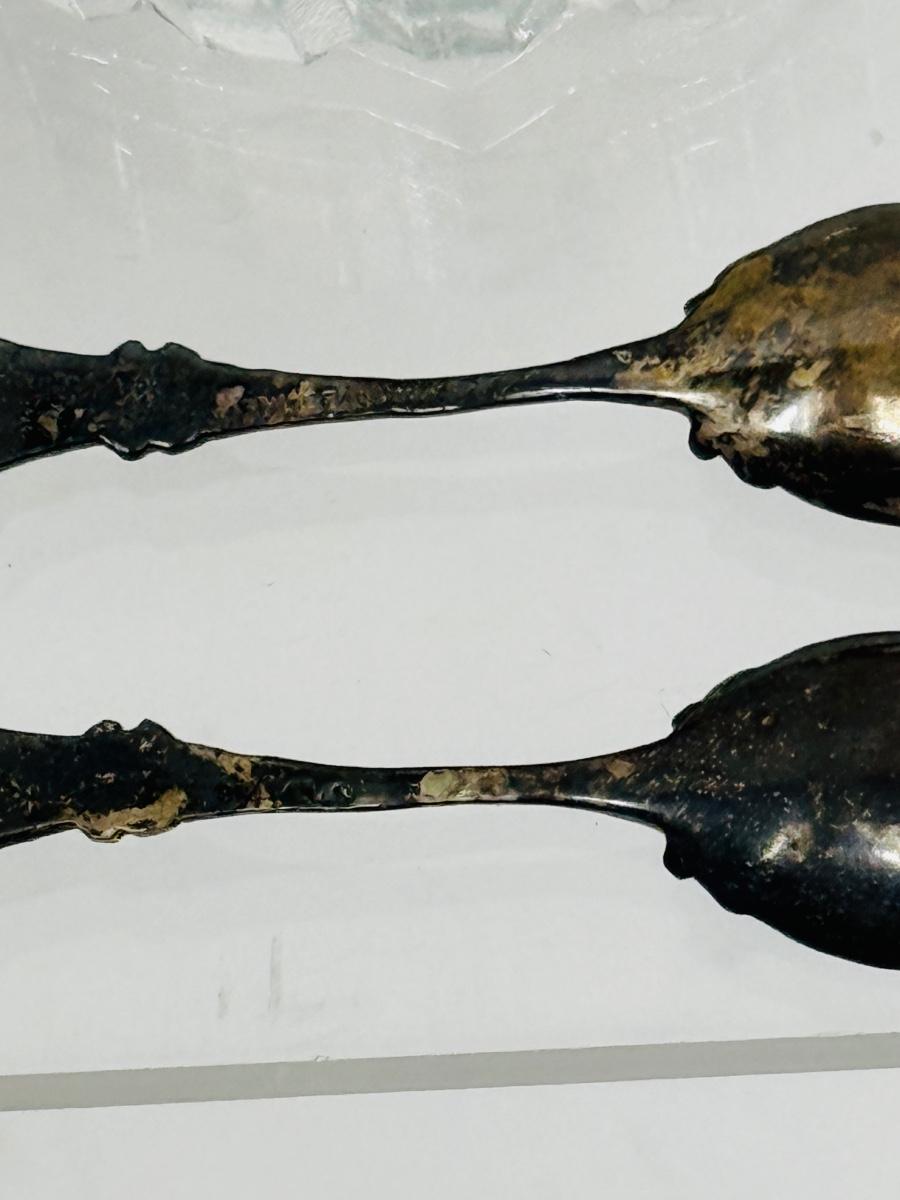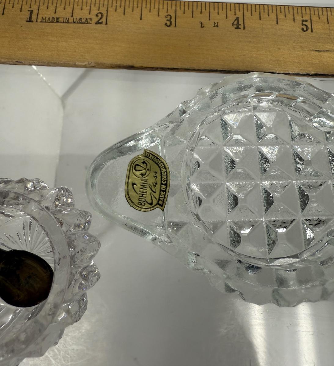 Bohemia Glass made in Czechoslovakia Open Salts Set of 2 salts and 2 silver spoons with tray