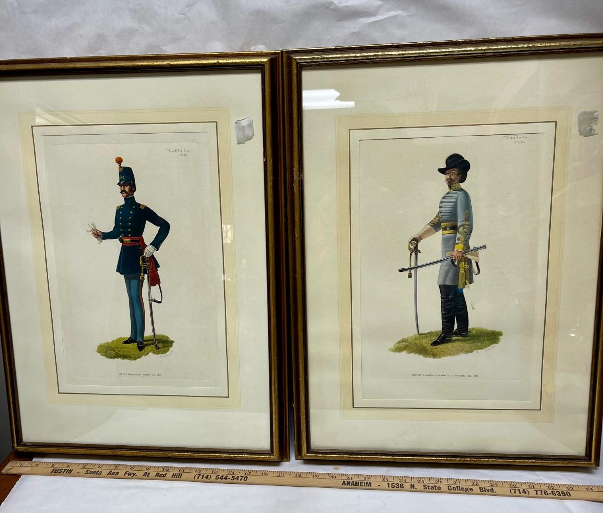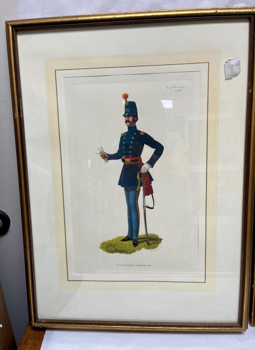 Two Barbosa LE prints works of art, framed, Military Dress, Soldiers