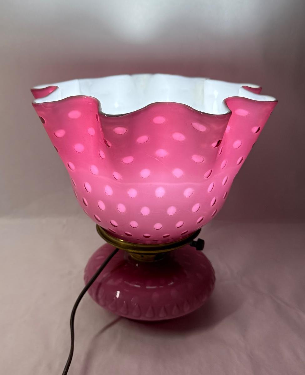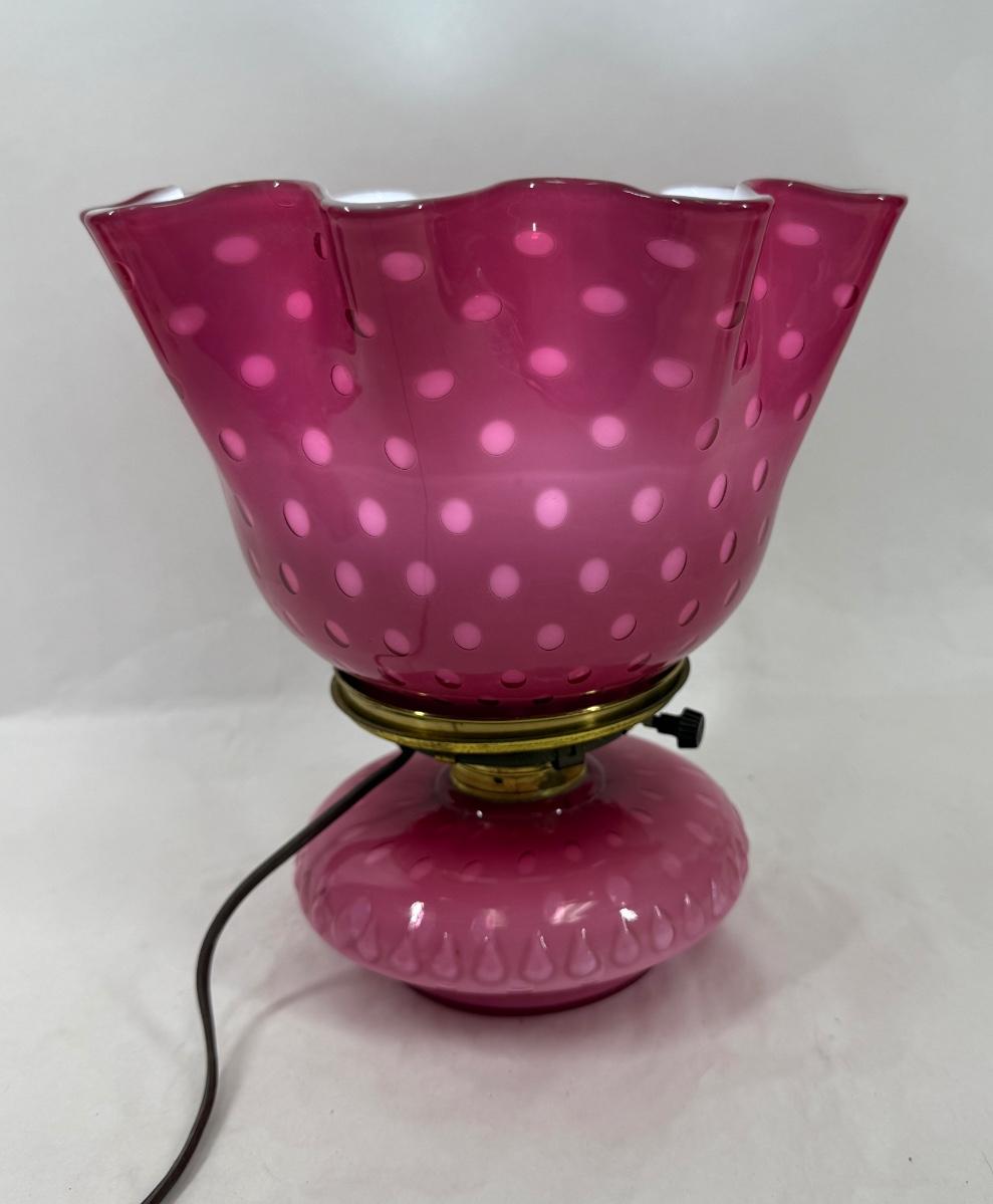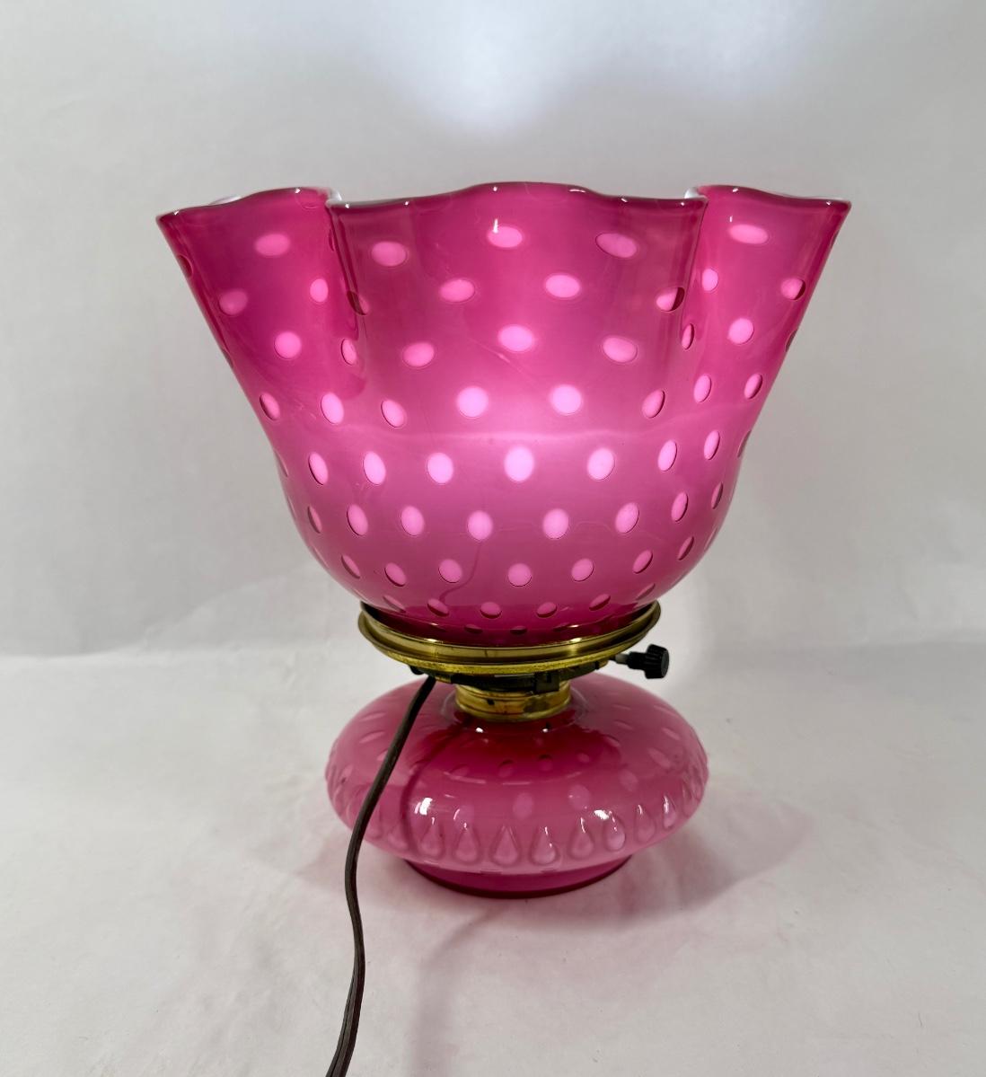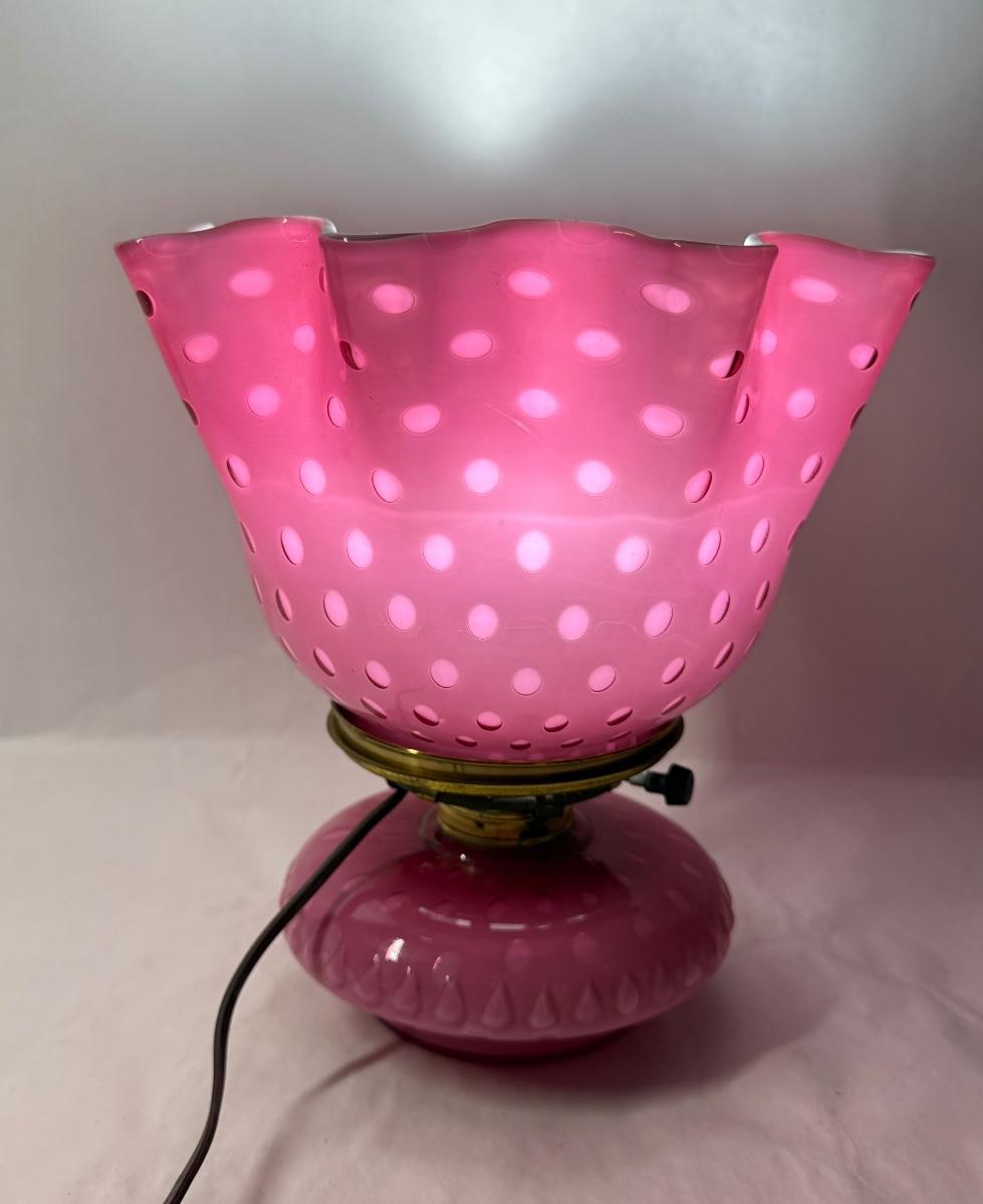 Fenton Bubble Optic Wild Rose Overlay Glass Electric Table Lamp