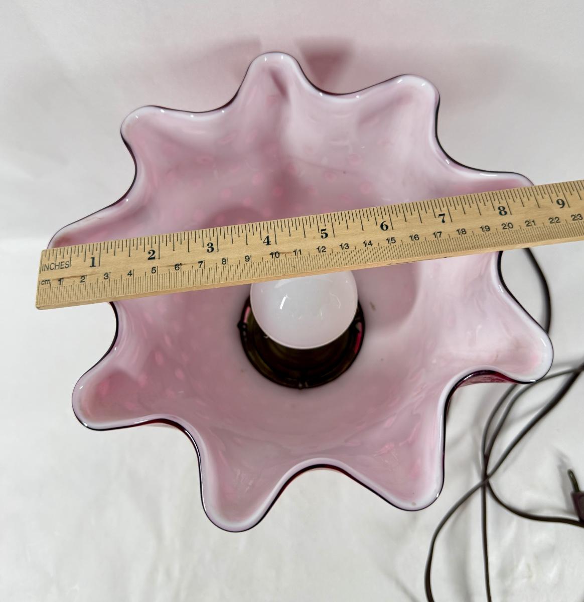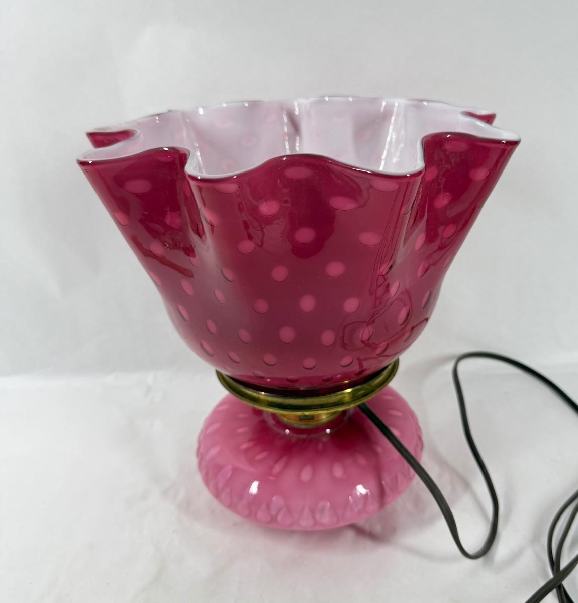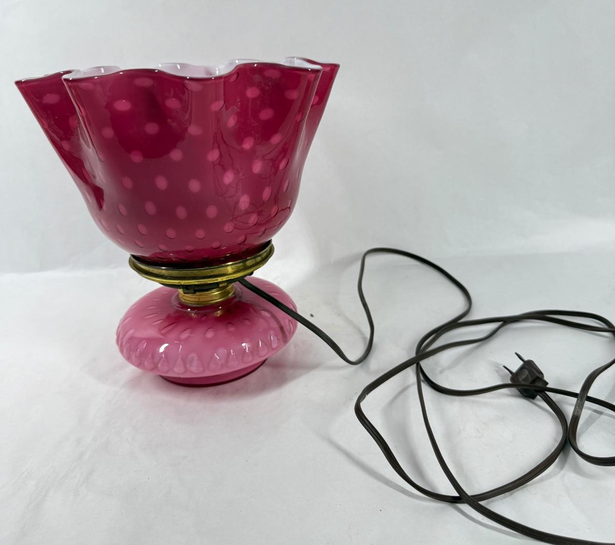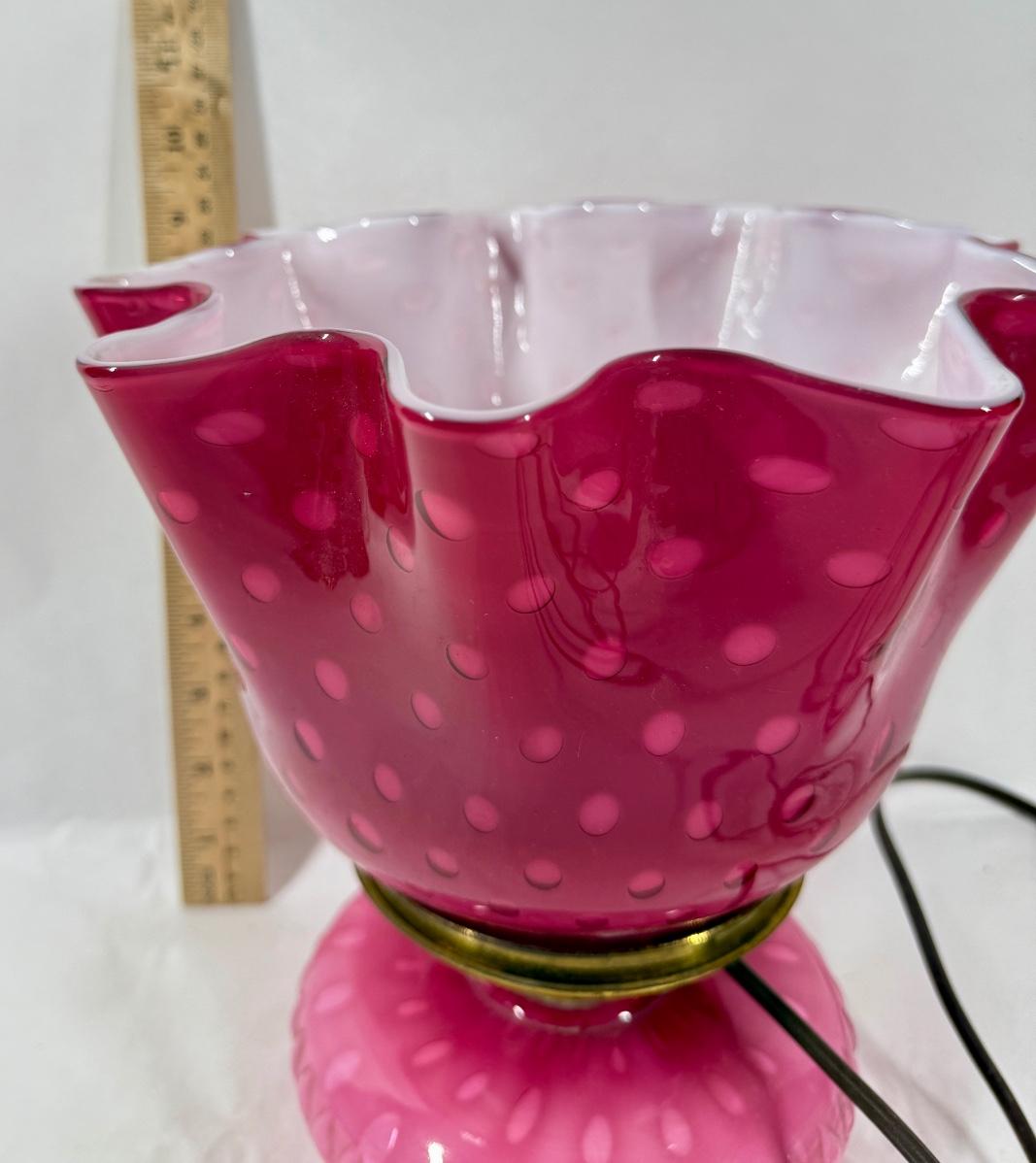 Fenton Bubble Optic Wild Rose Overlay Glass Electric Table Lamp