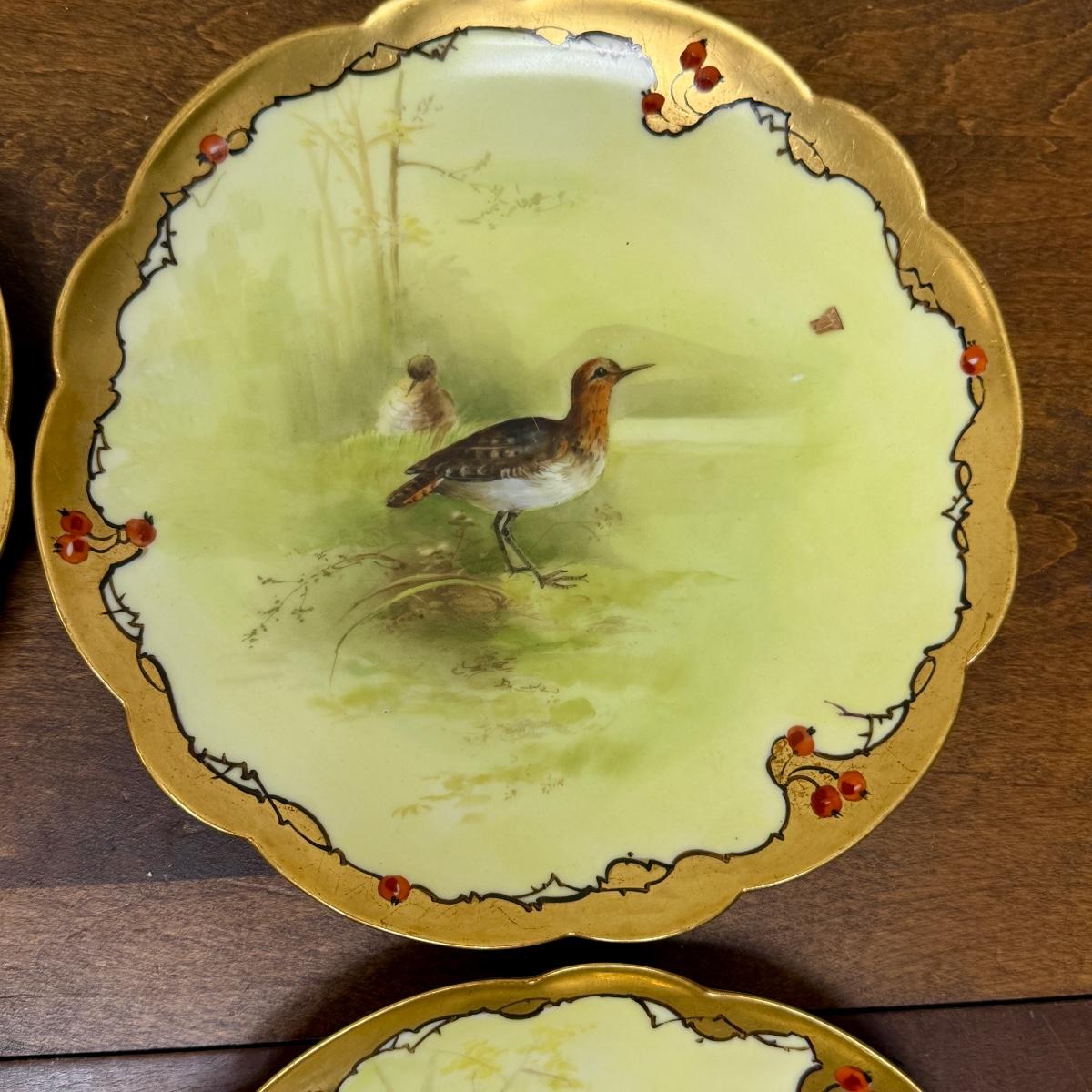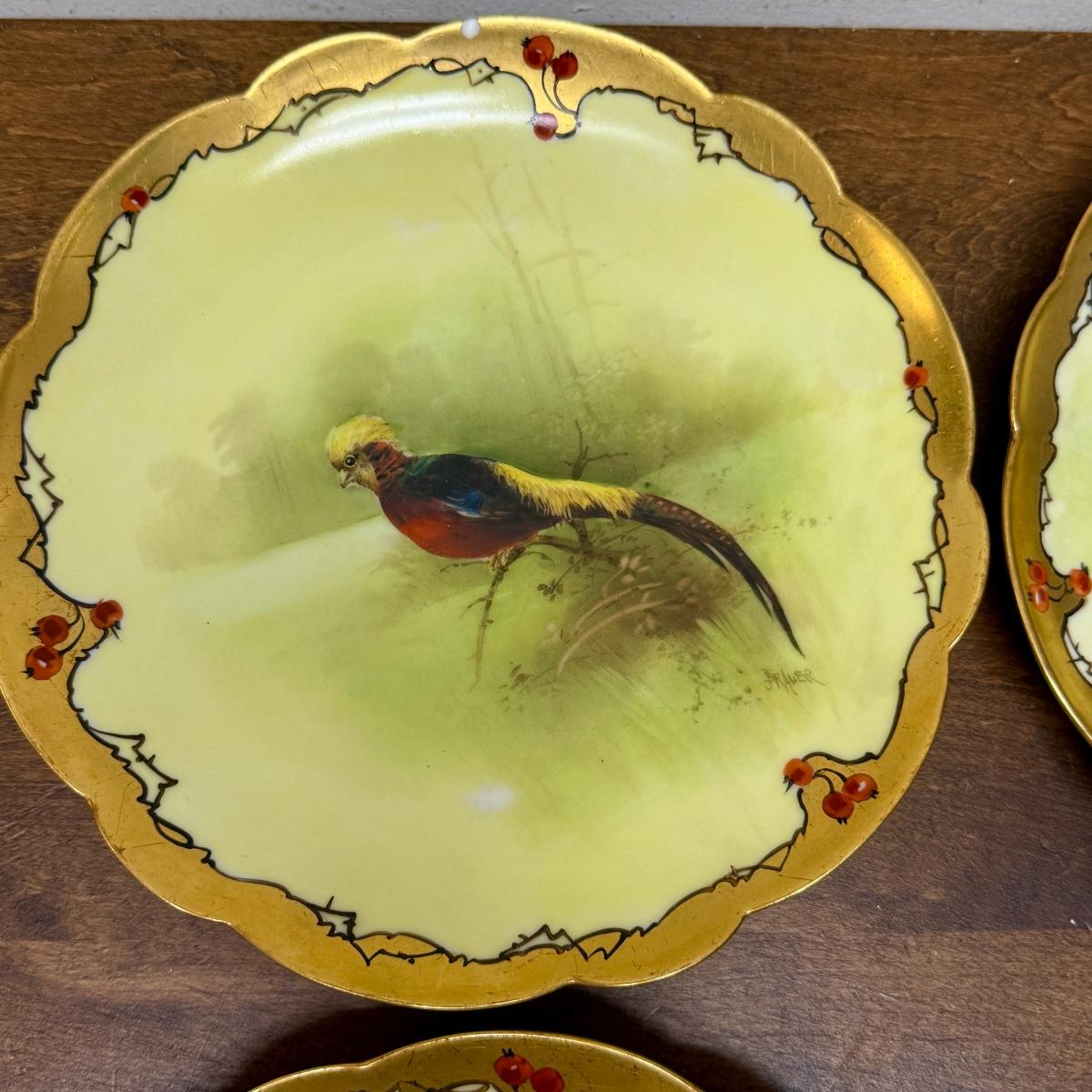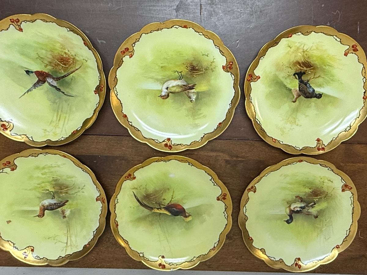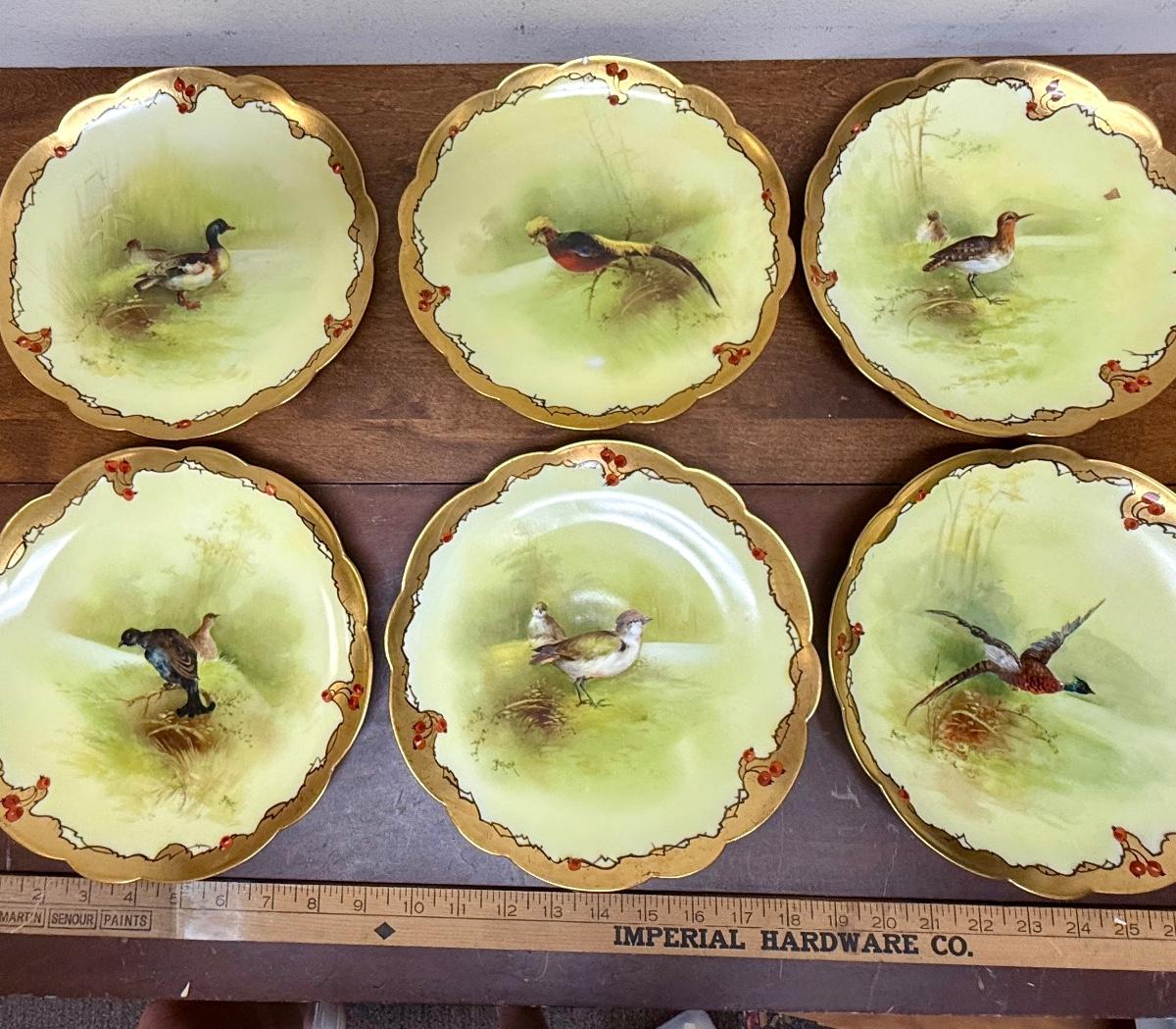 LOT OF 6 Limoges France Plates Birds Pheasants with Gold Leaf trimmed Edges