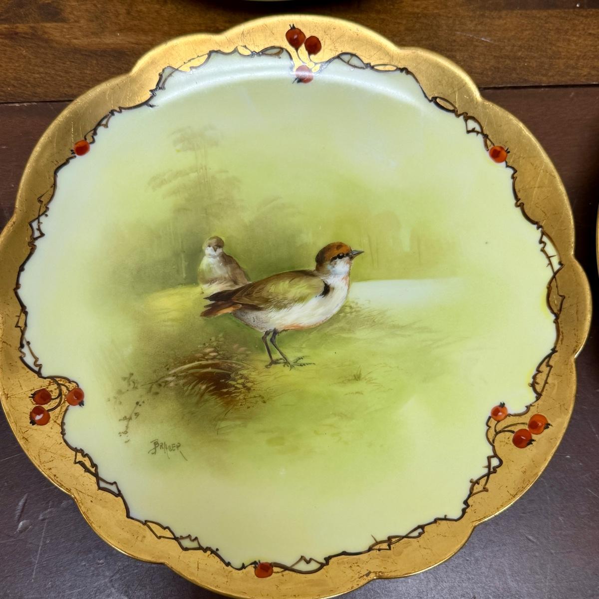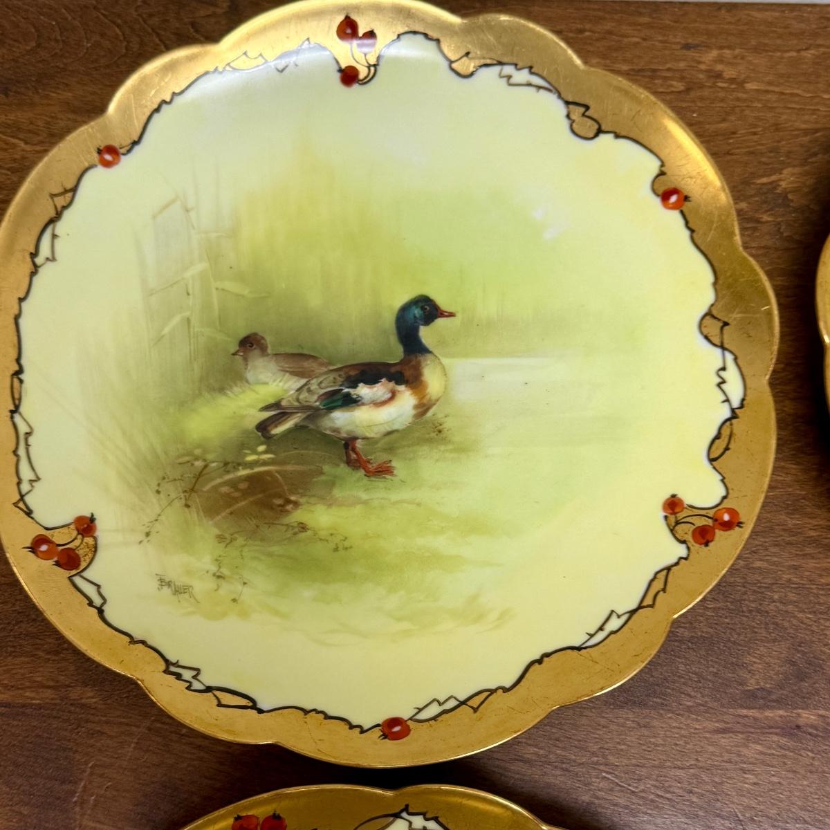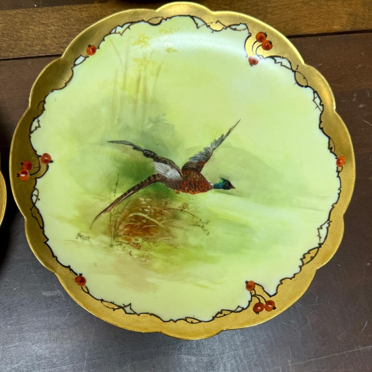 LOT OF 6 Limoges France Plates Birds Pheasants with Gold Leaf trimmed Edges