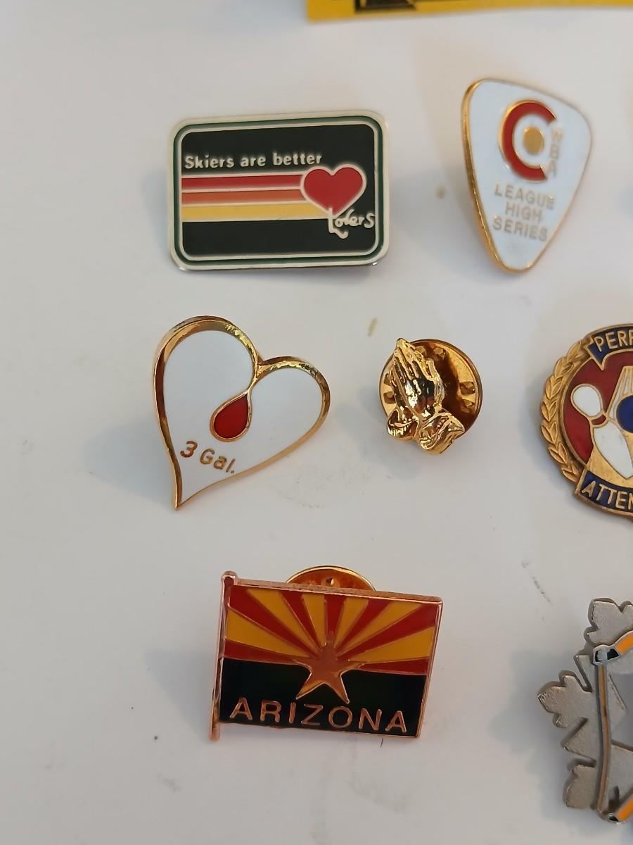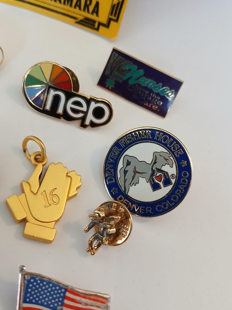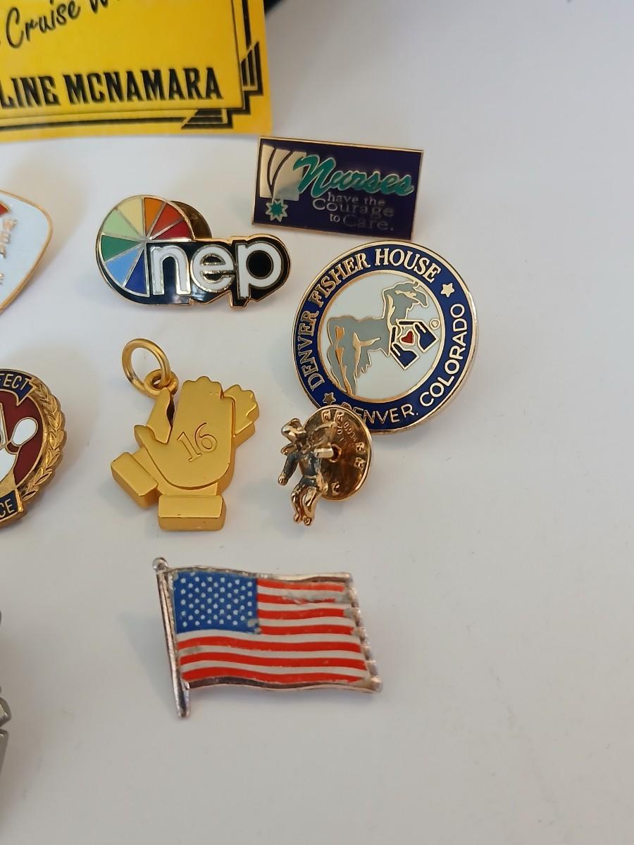 Lot of Enamel Lapel Pins + and an American red, white and blue necklace Just in time for the 4th of July!