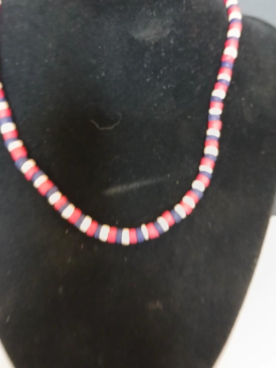 Red, White & Blue Beaded Necklace (stretch cord, approx. 18")