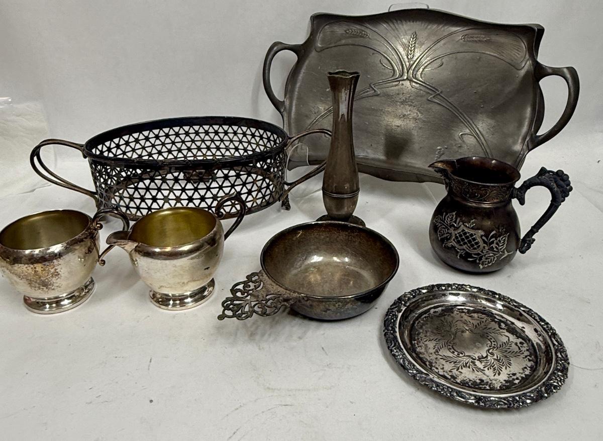 Silver-Plated and Pewter Tableware Serving Pieces and Vase Lot