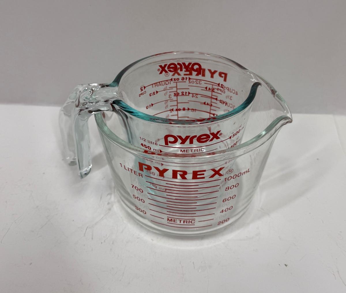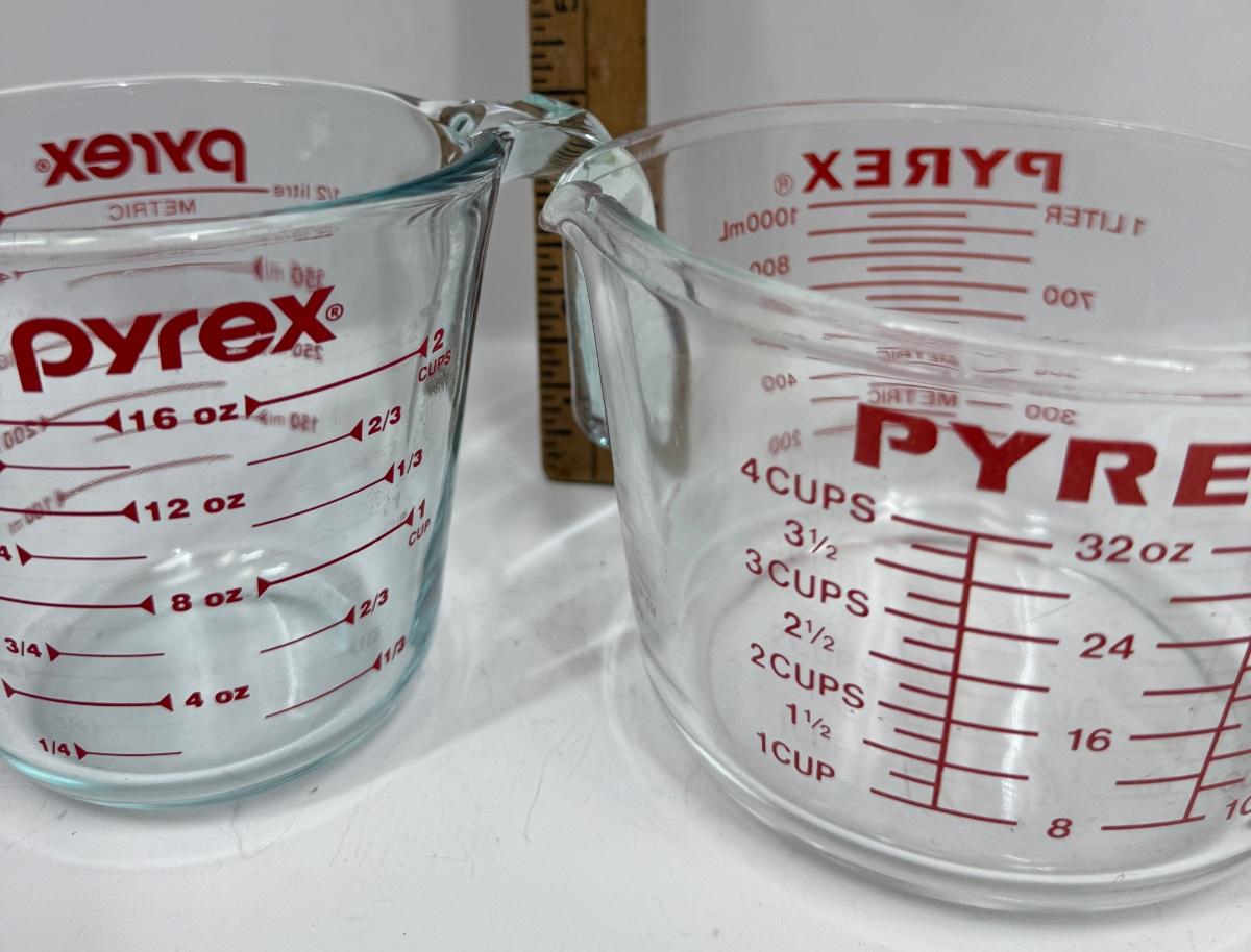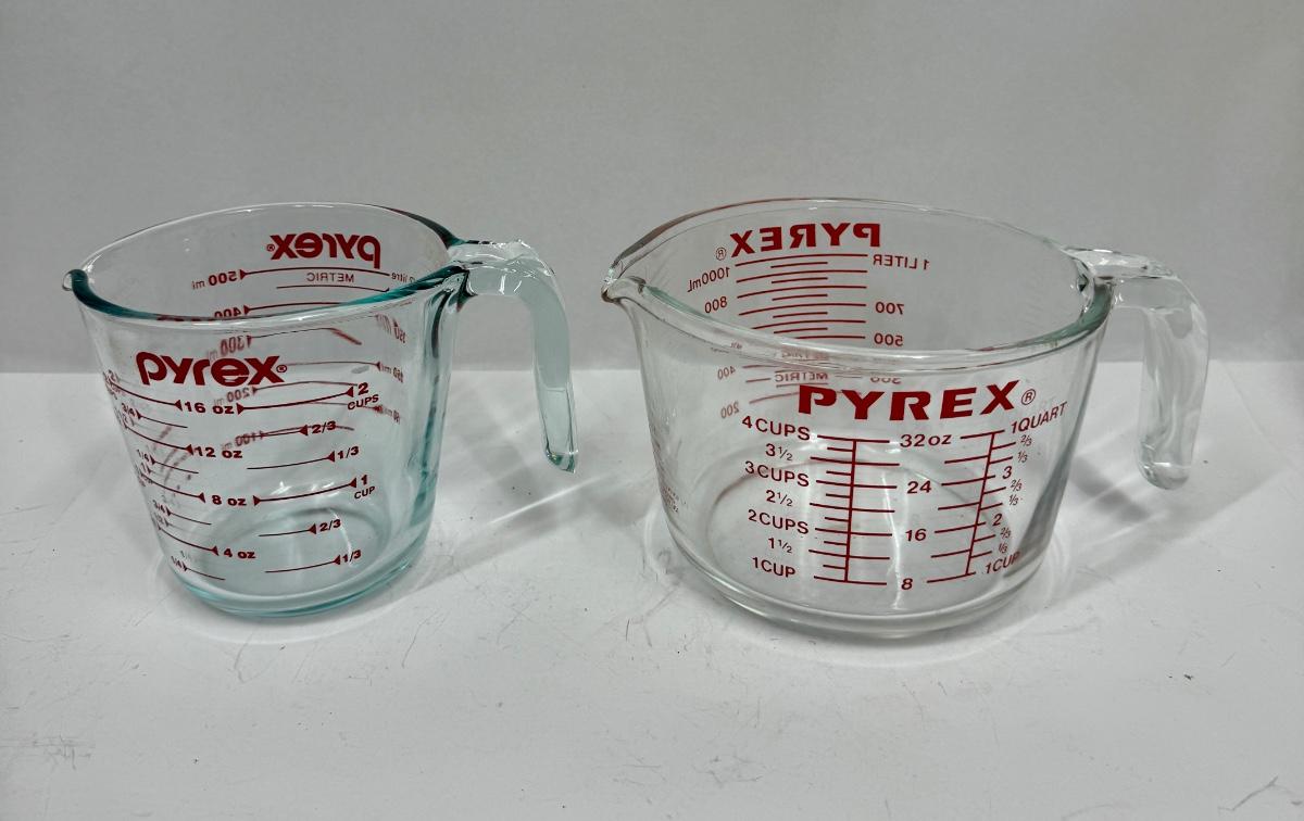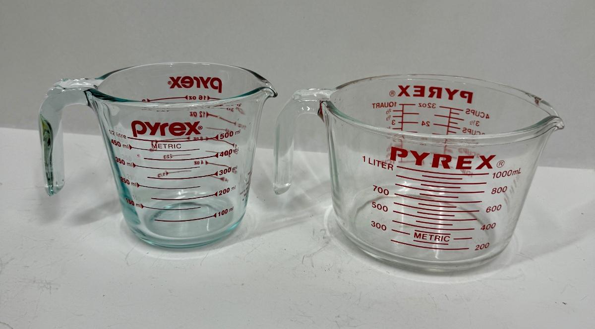 Vintage Pyrex Glass Measuring Cups, 2 cup measure and 4 cup measure