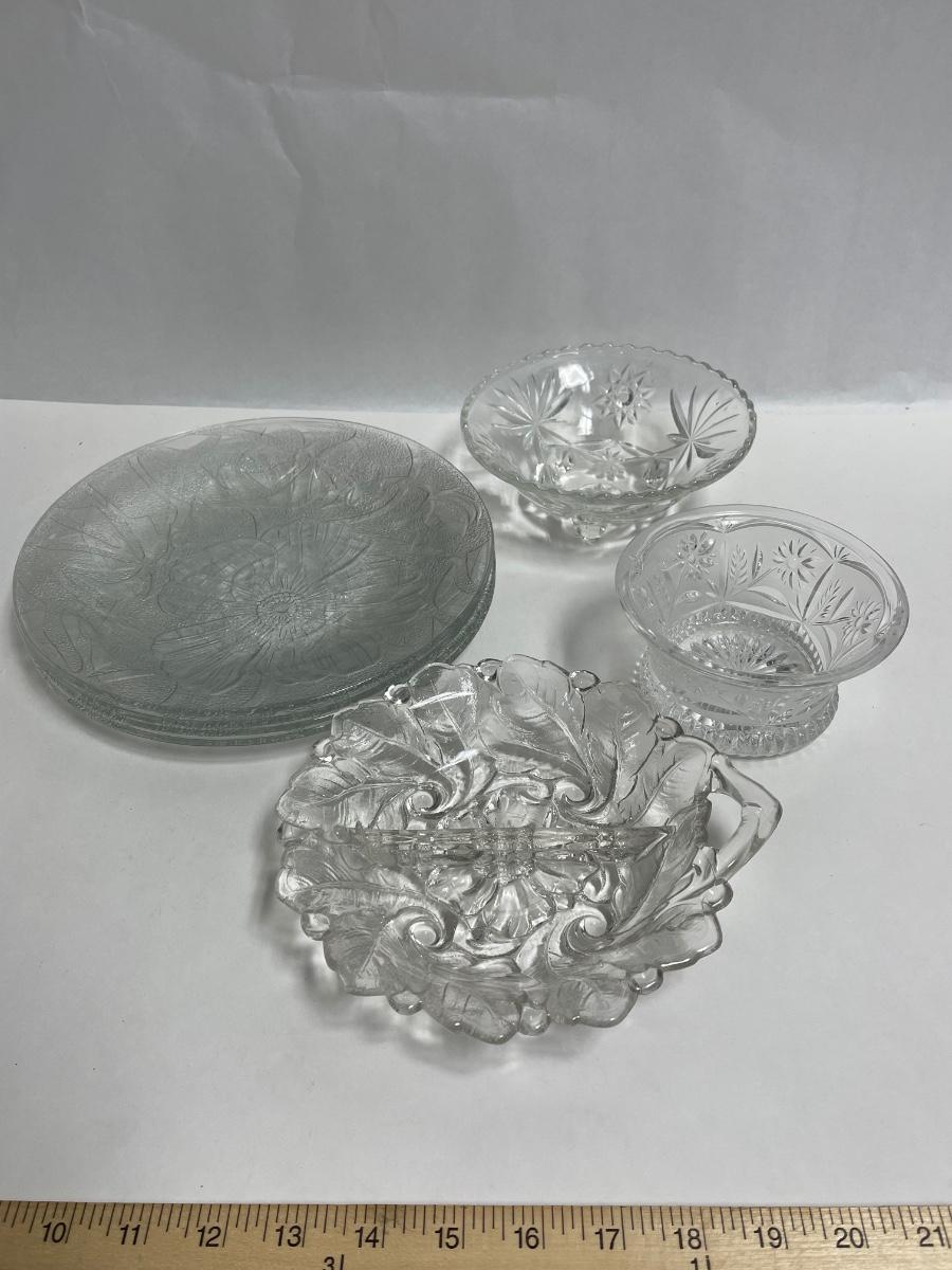 Mixed Lot of Clear Glass = luncheon plates and 3 bowls