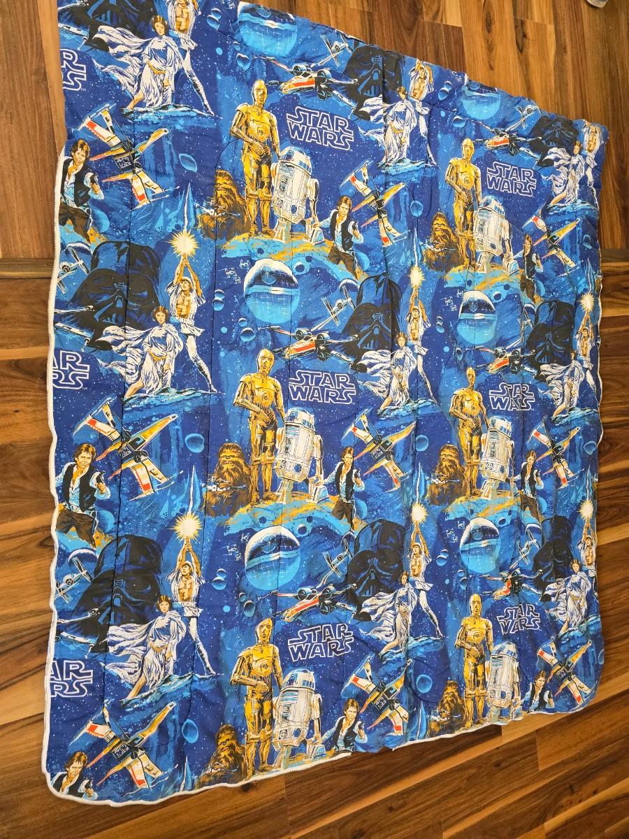 Vintage Star Wars Sleeping Bag – features classic characters like Luke, Leia, R2-D2, C-3PO, Han Solo, Chewbacca, and more in vibrant retro print. Zipper pull is missing but bag is otherwise in good vintage condition.
