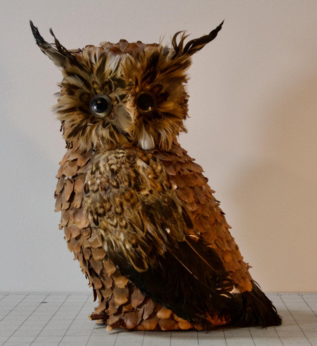 Feather and Pinecone Owl, Hand crafted!