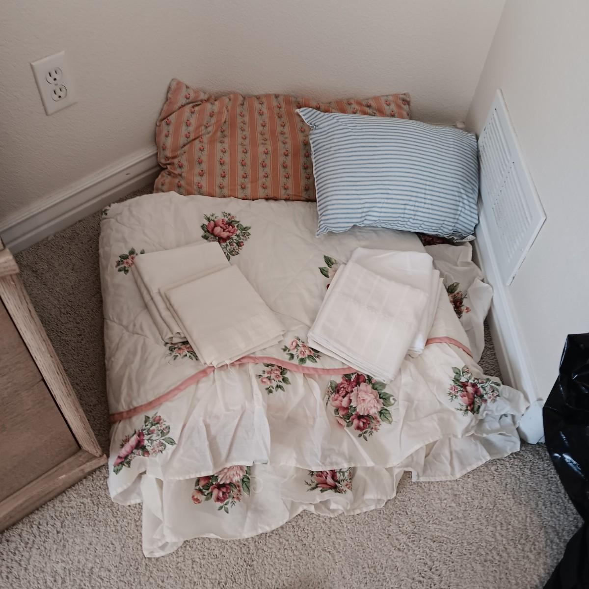 FEATHER AND SMALL PILLOWS, COMFORTER AND PILLOWCASES