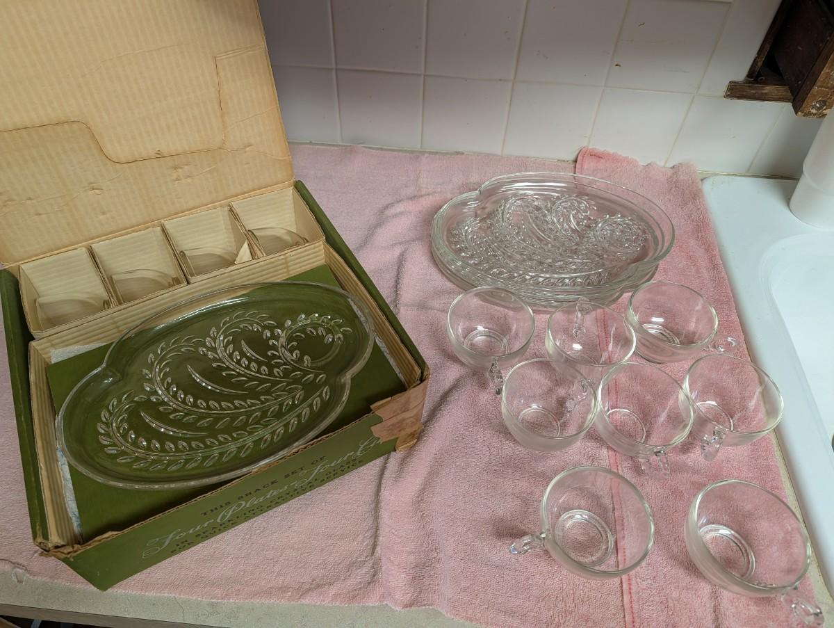 Two Federal Glass Snack Sets Hospitality in origin box.