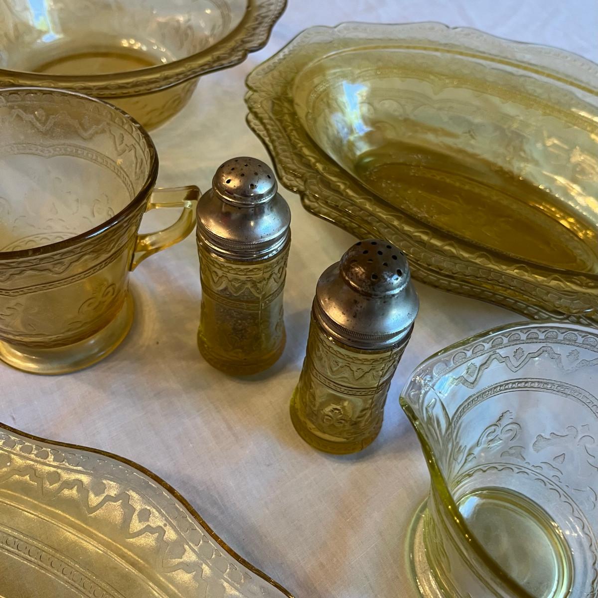 2 Round bowls, 2 oval bowls, creamer & Sugar, Platter, and Salt & Pepper. All good! Book Value $202