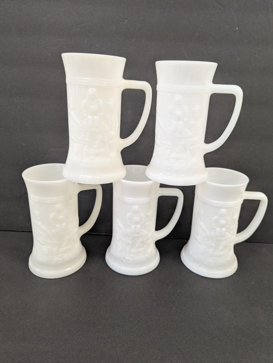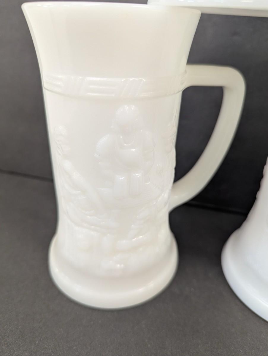 Federal White Milk Glass Beer Stein Mug German Bar Pub Scene