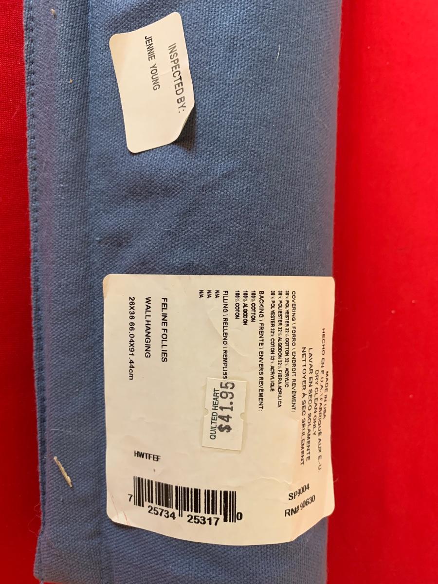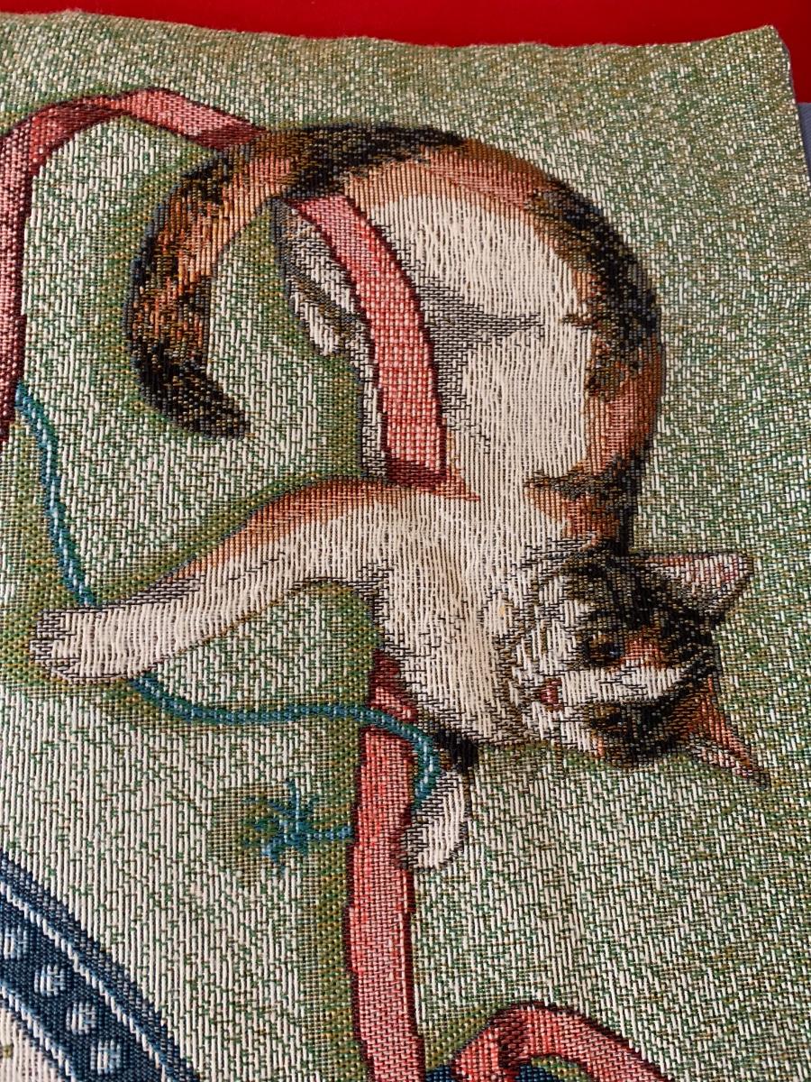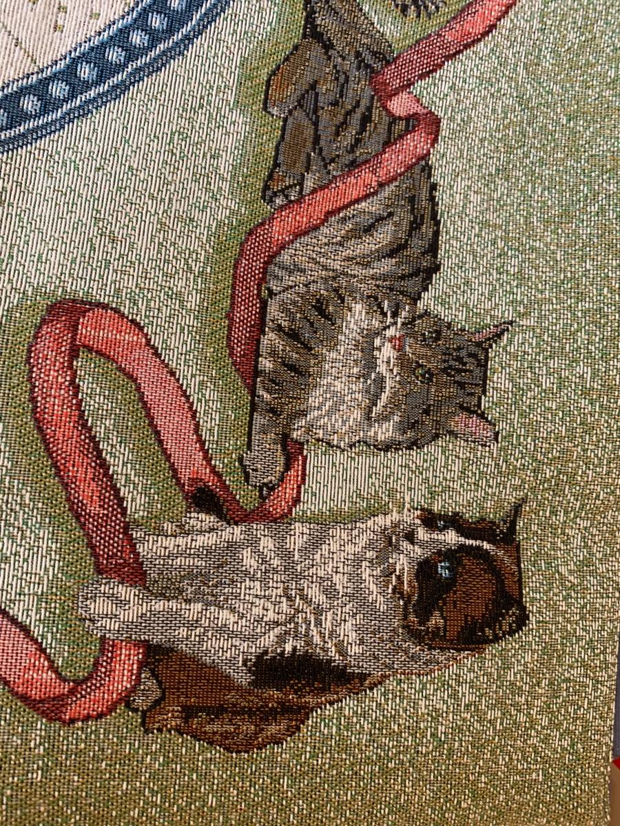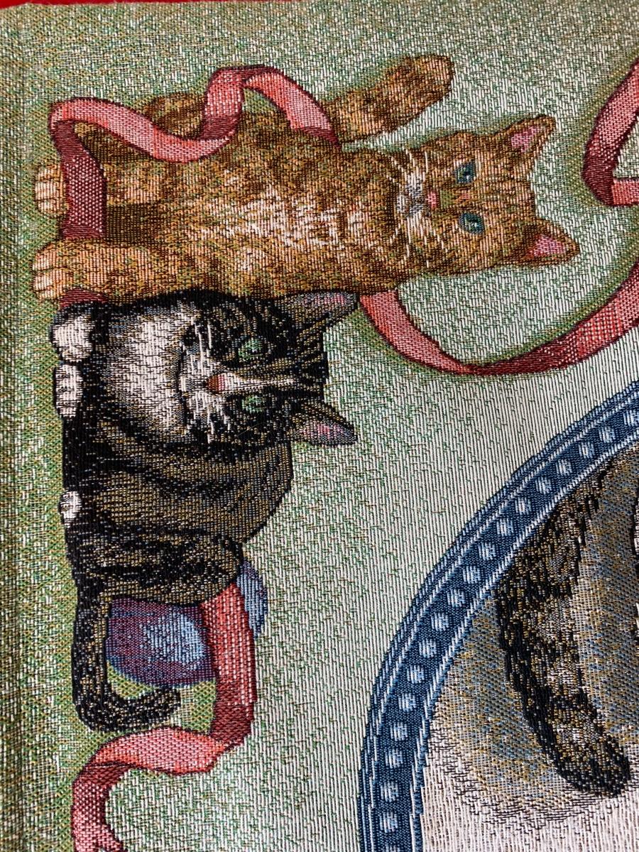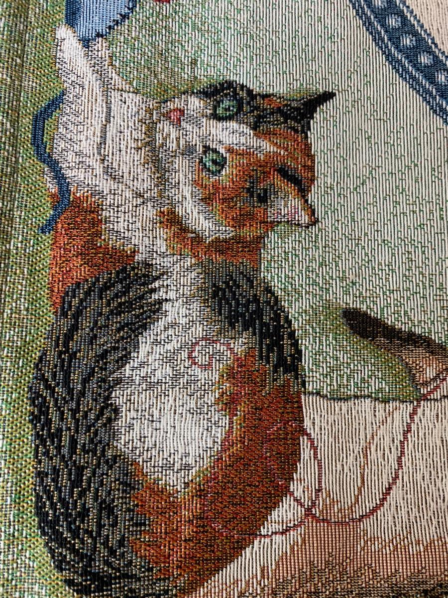 Lot includes a very nice condition tapestry featuring cat portraits. Includes the wood dowel for hanging. Made in USA. 26” x 36”