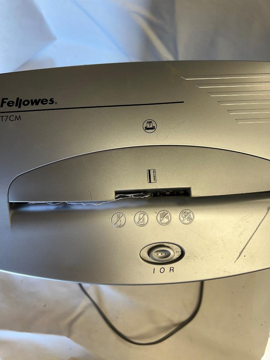 Personal shredder cross cuts for additional security, includes credit card slot and can accommodate 7 sheets at a time.