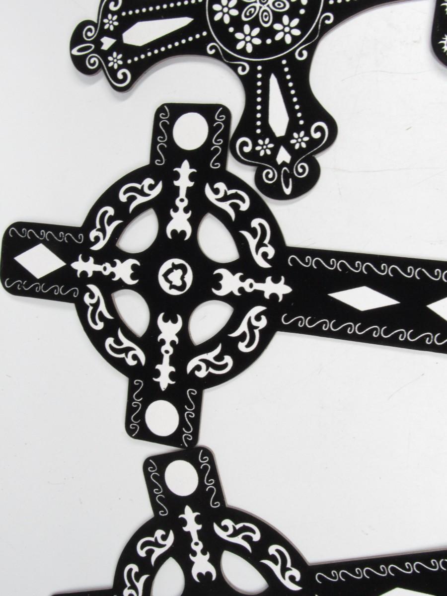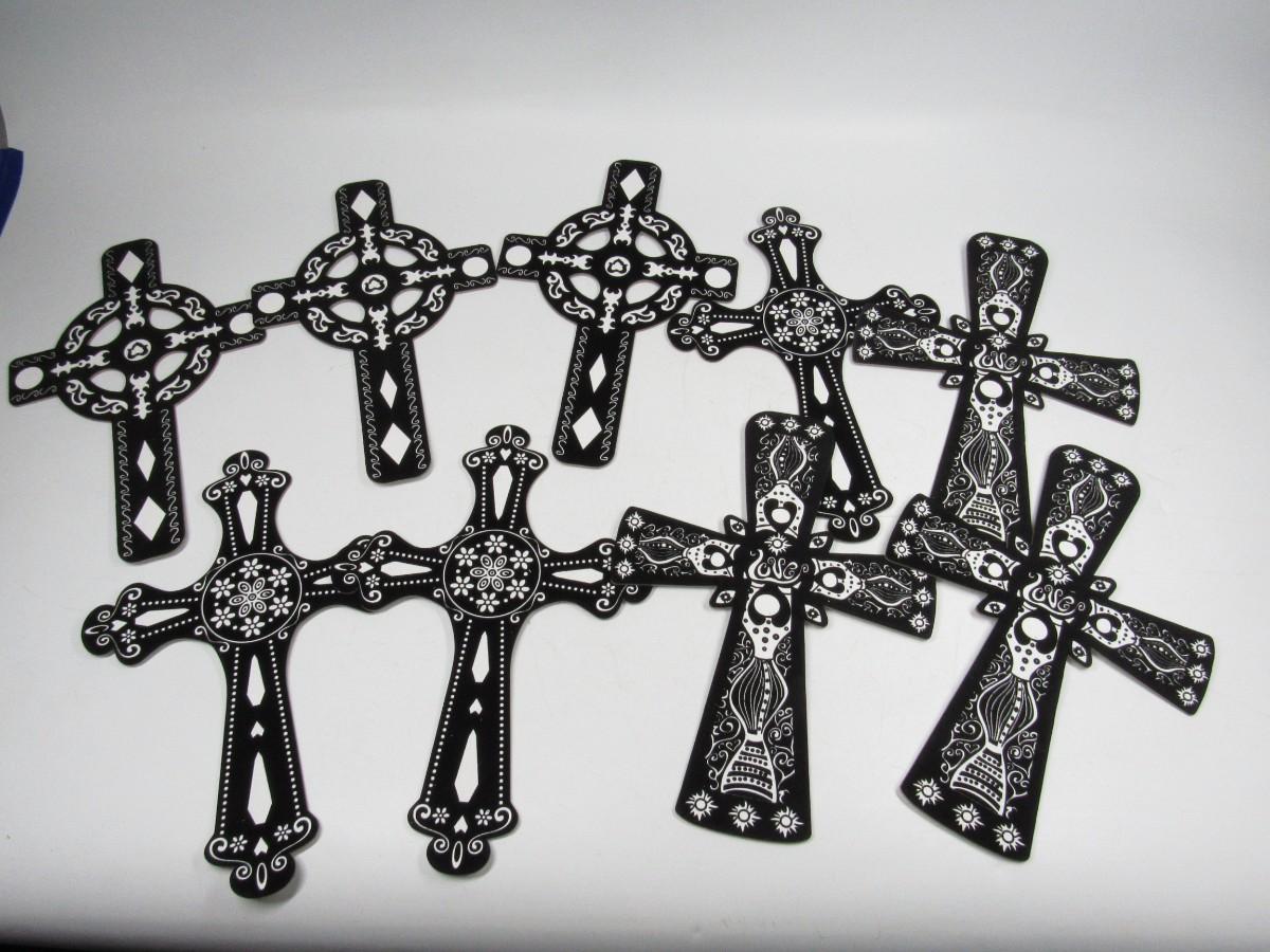 9 items, all shaped like a Celtic Cross. All are in new condition. Size is approx 12" x 9".