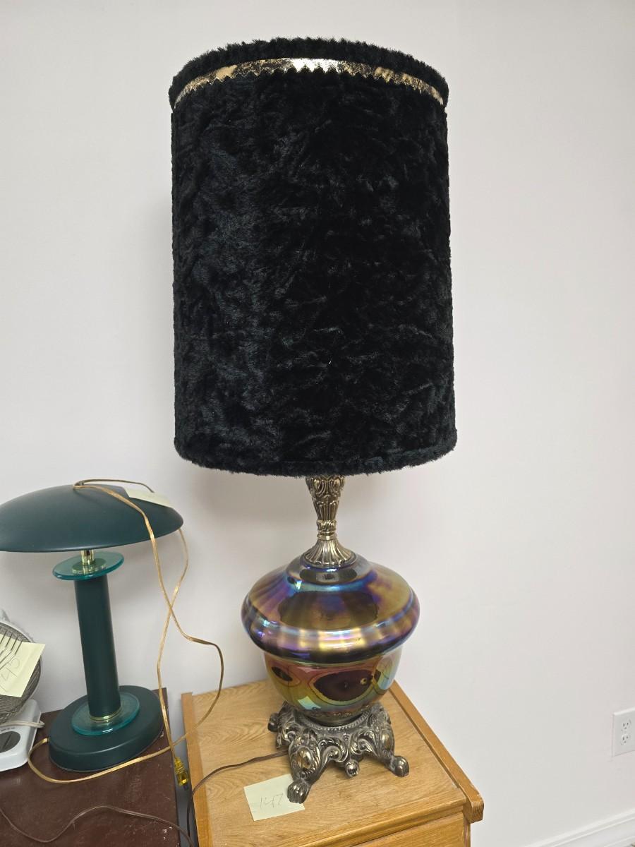 carnival glass bottom and black velvet shade