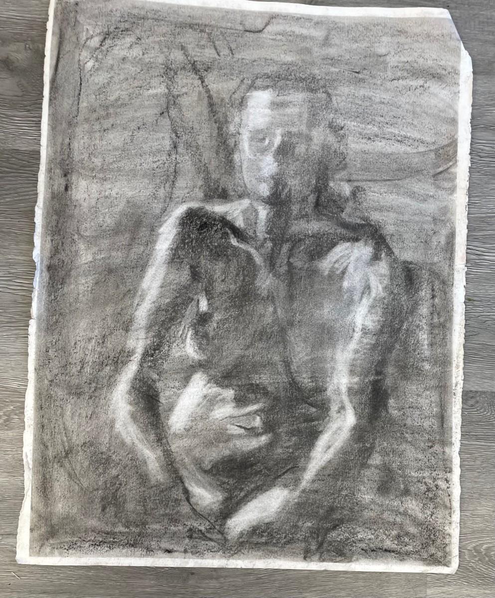 Description: Female Erotic nude Charcoal sketch; Material: Paper; Measurement approximate: 24x18 in.