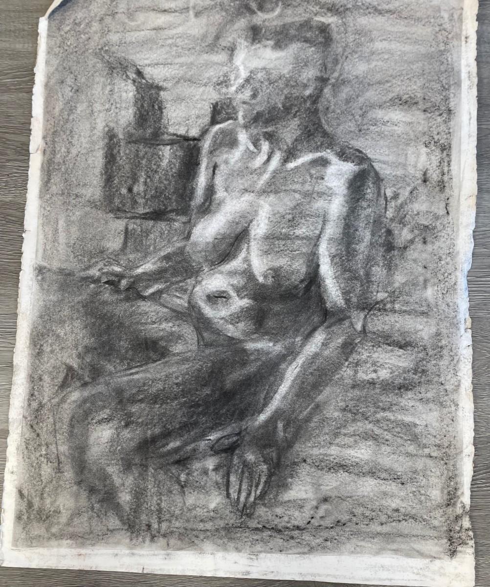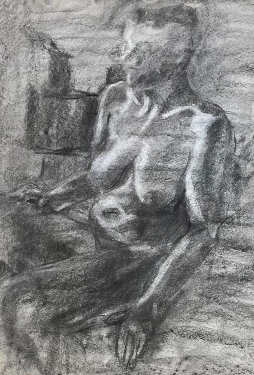 Description: Female Erotic nude Charcoal sketch; Material: Paper; Measurement approximate: 24x18 in.