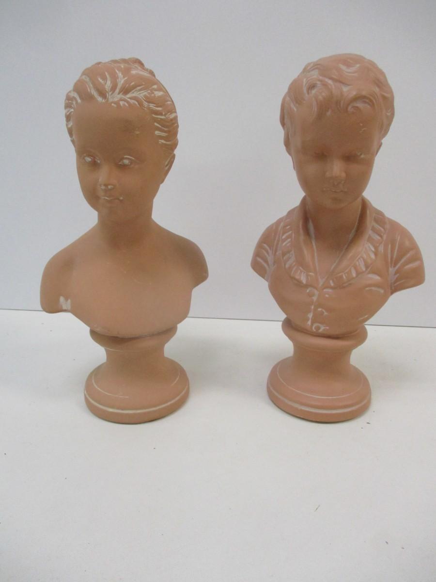Female & Male Child Sculpture Bust Greek Roman Terracotta Clay