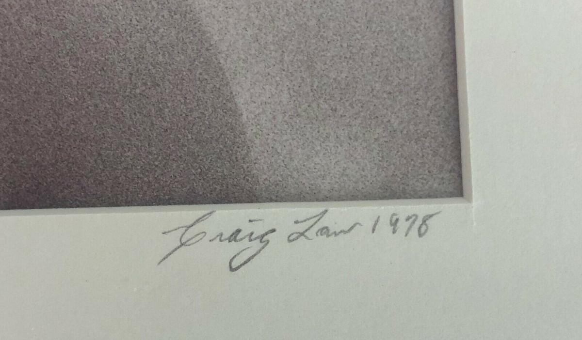 art photograph of a female nude. With screened effect...signed by Craig Law in 1978..framed and matted...Image 8.75 x 6"...Frame 14.25 x 11.25".