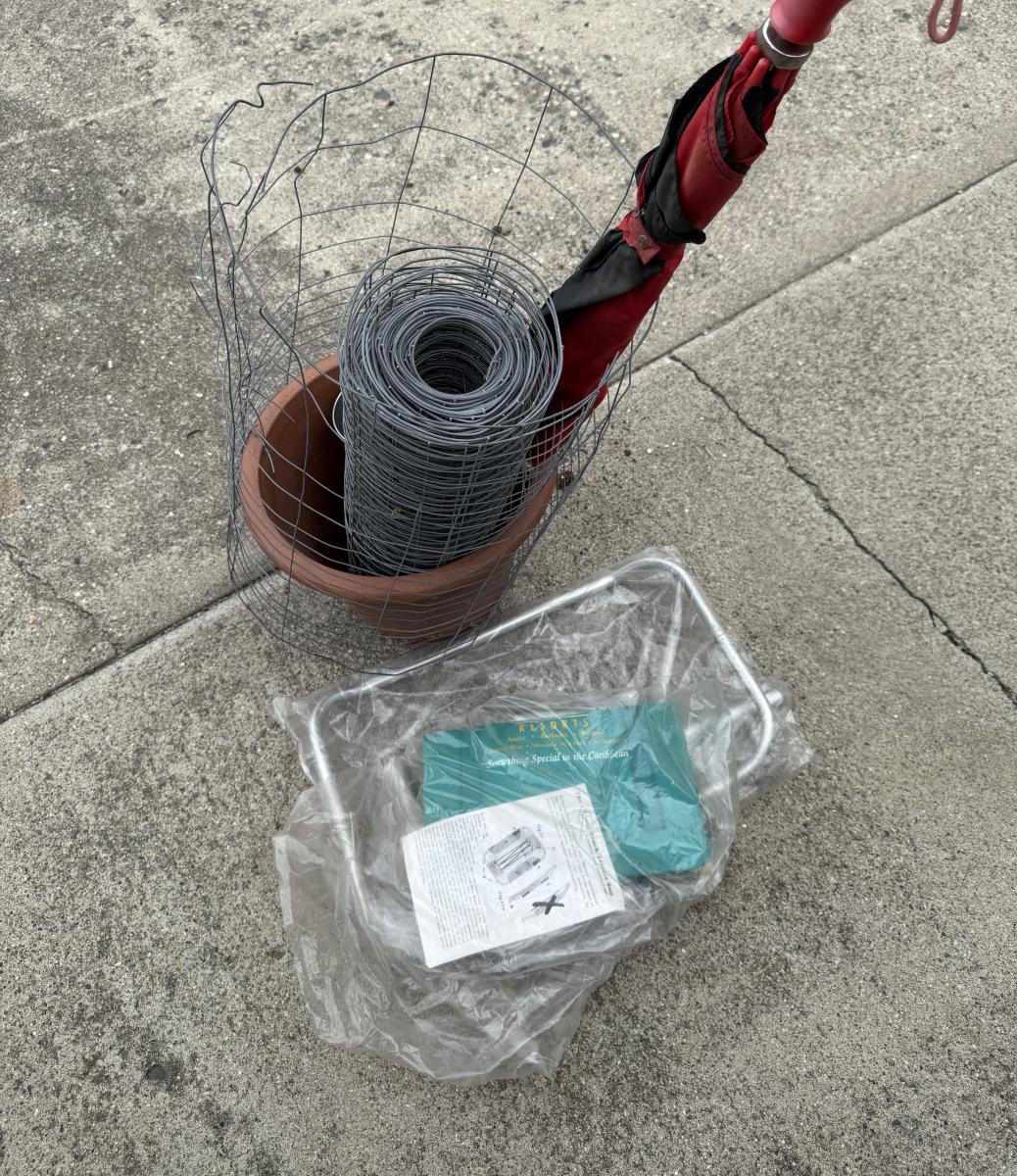 Fencing, umbrella, beach chair