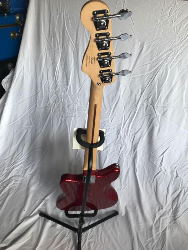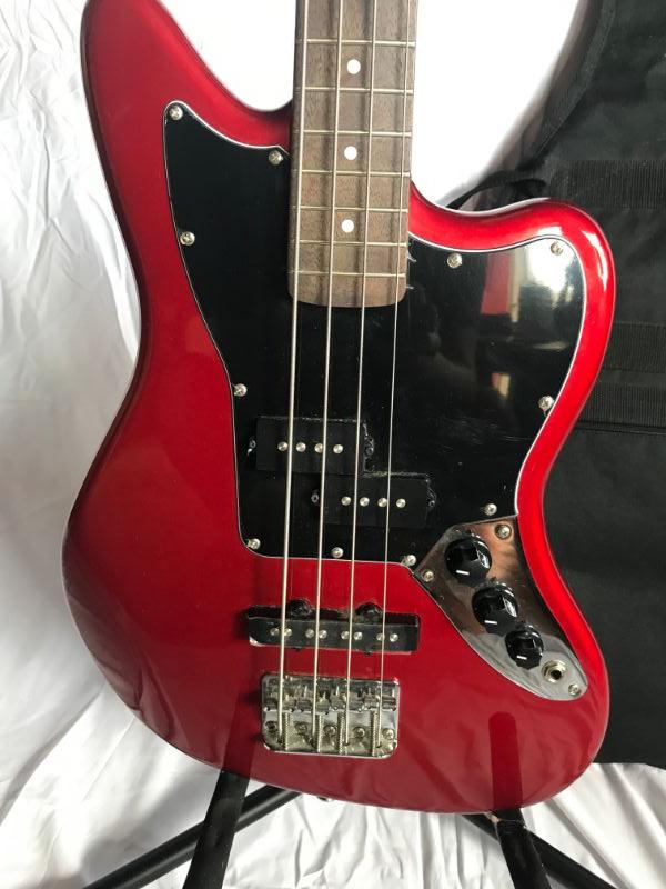 Lot#19 Fender Squier Jaguar Bass Guitar with Fender Guitar case and Stand