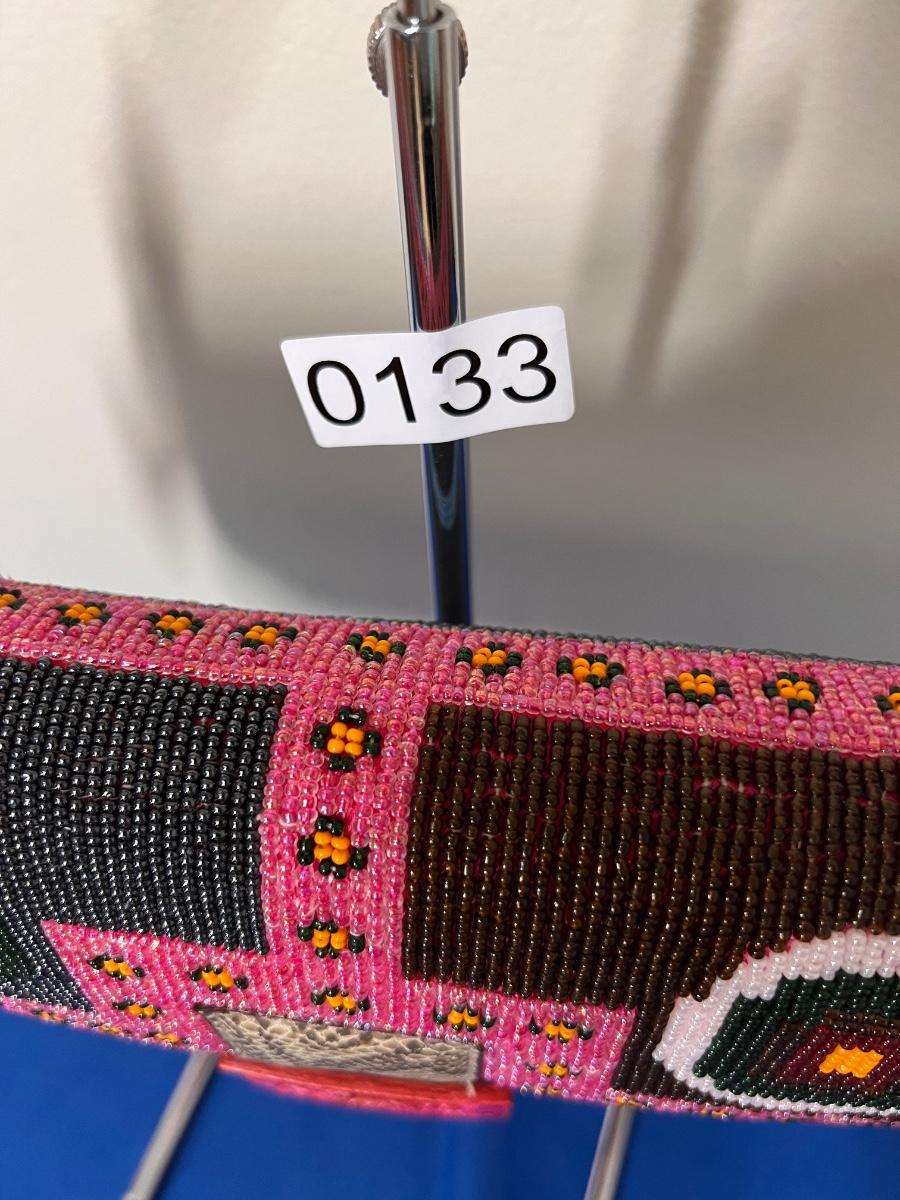 Color: pink and multicolored beading