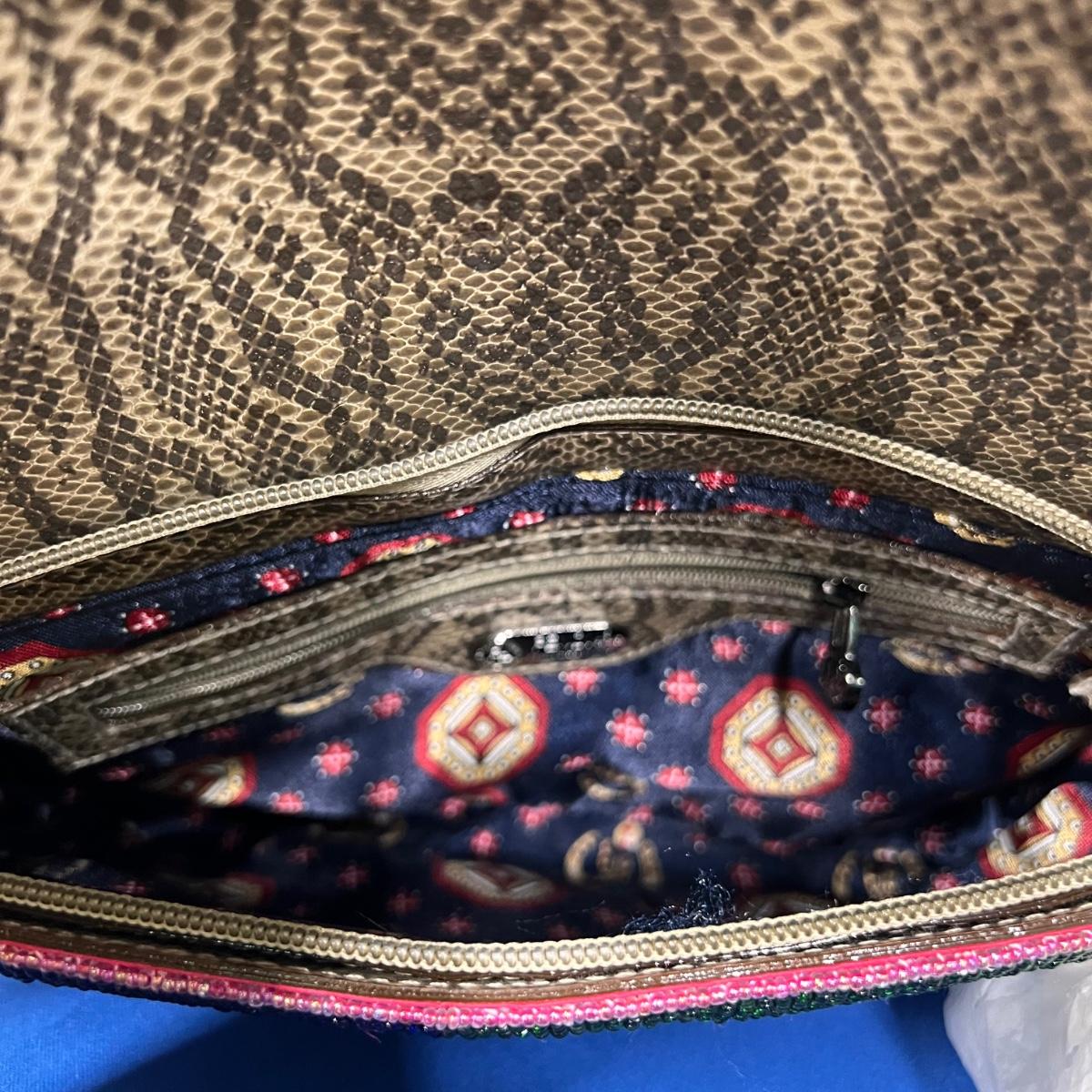 Vintage Fendi Multi Colored Beaded Bag, adjustable buckle snake skin shoulder strap, fold over flap with snap closure.