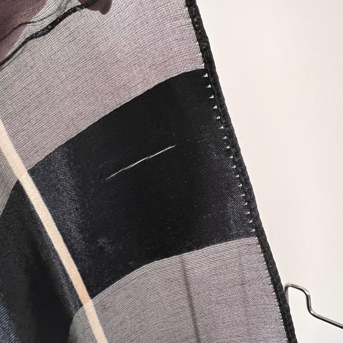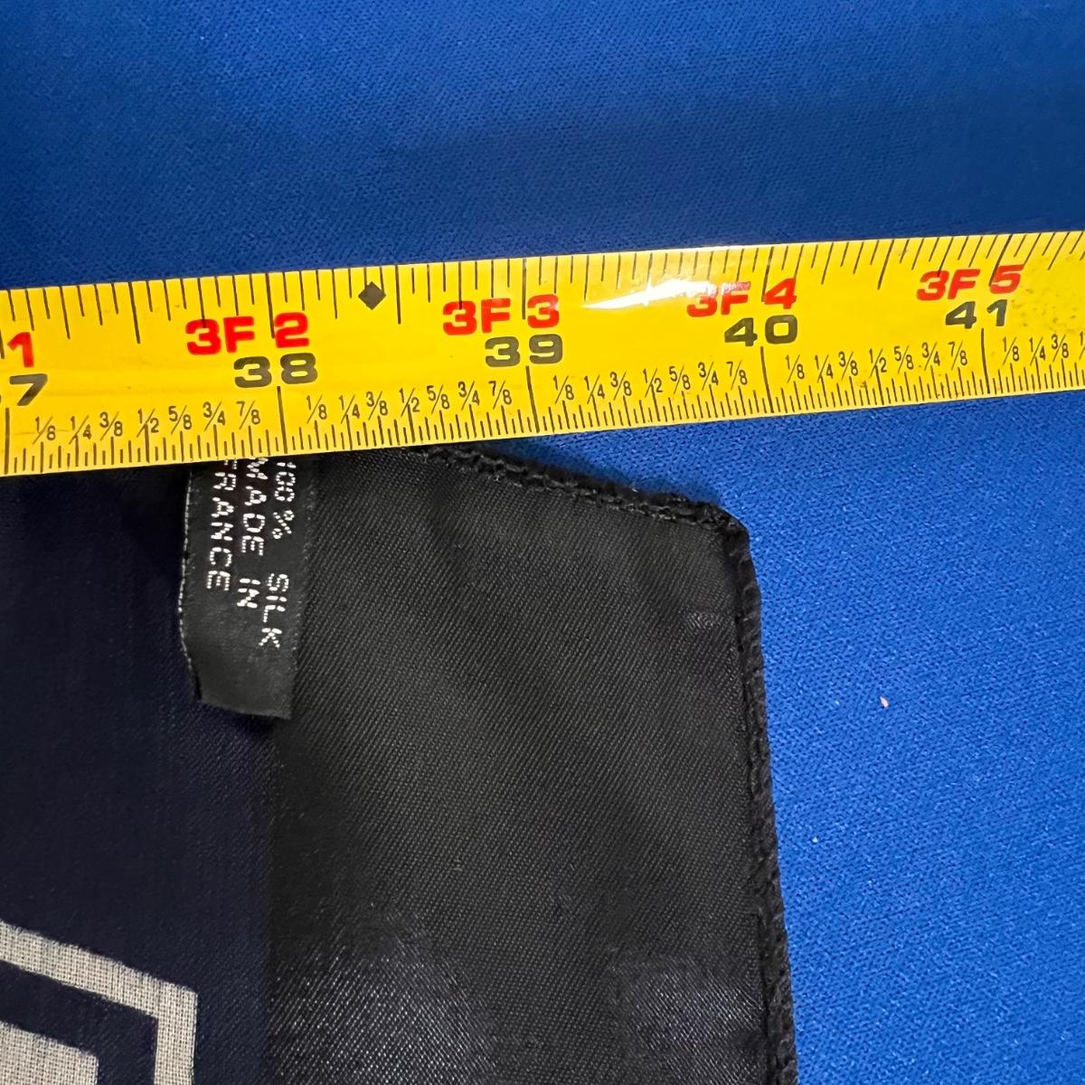 40” square. Tag reads 100% silk made in France. Has some pulls as shown in pictures. Shear and solid design.