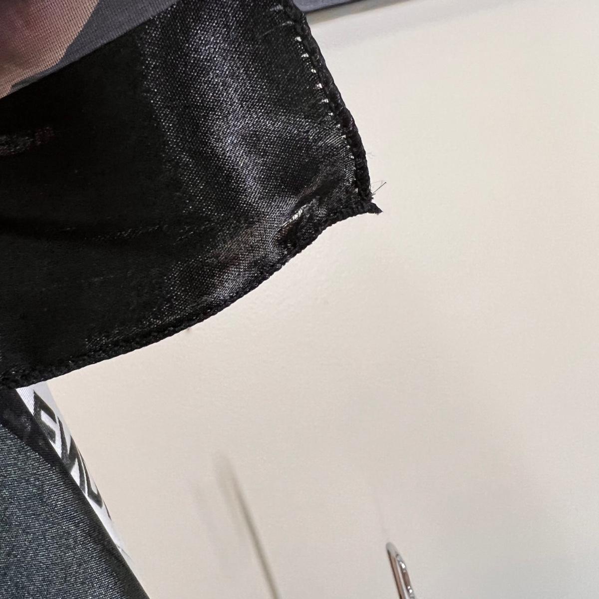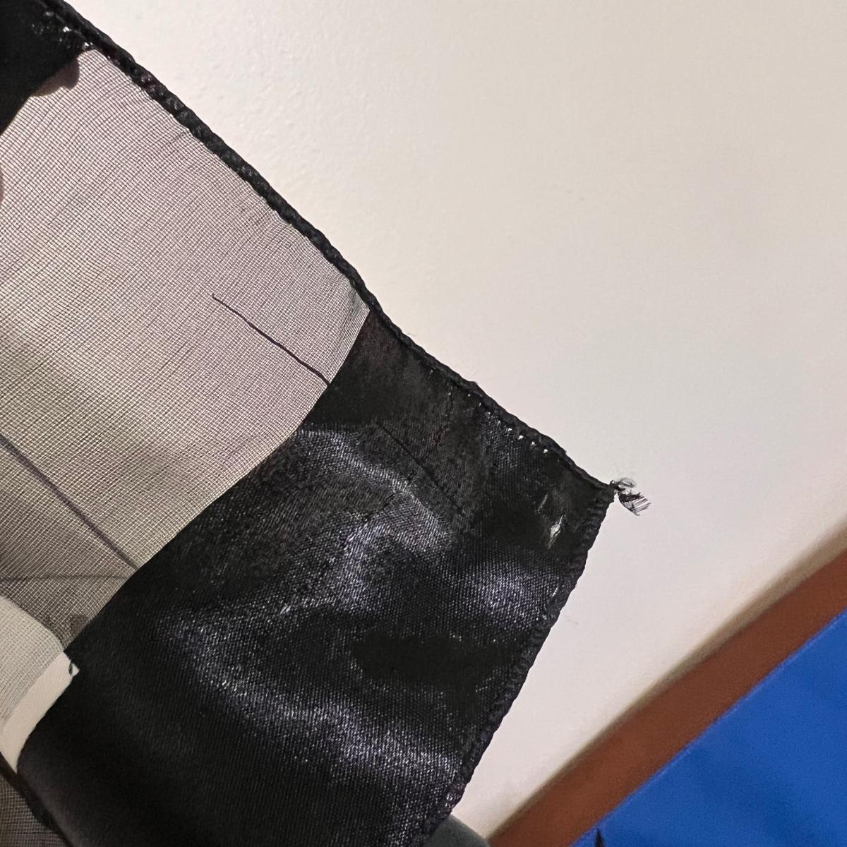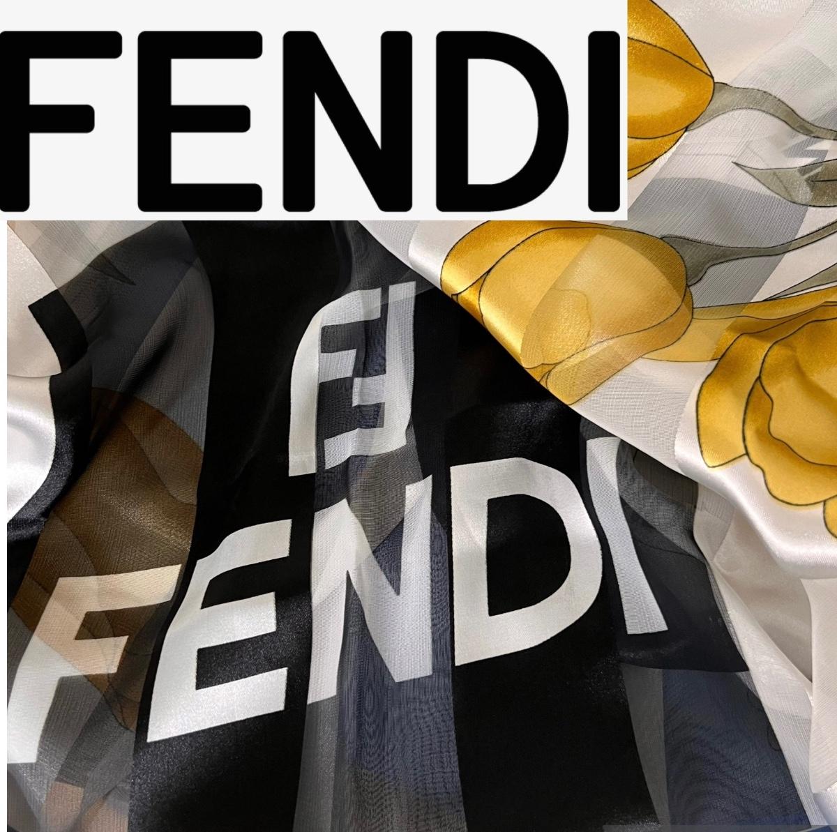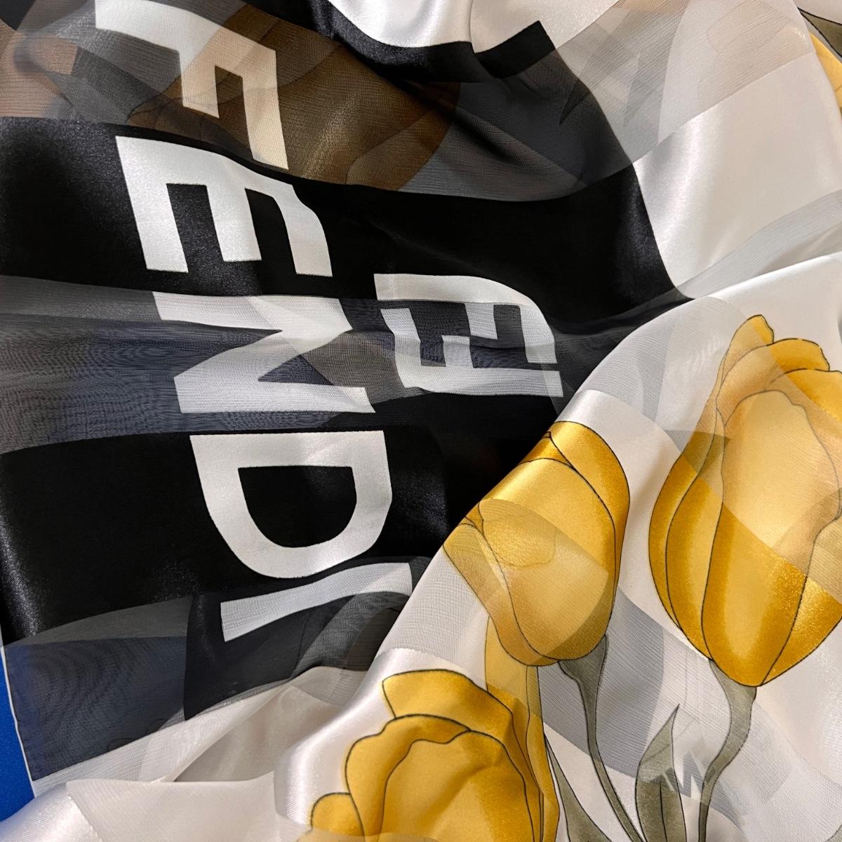 40” square. This scarf does not have a tag. It has shear and solid pattern. Stitching is loose in some spots as shown in pictures. Also has some pulls as shown. Feels like the other Fendi scarf listed which has a tag saying it’s silk.