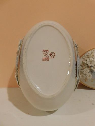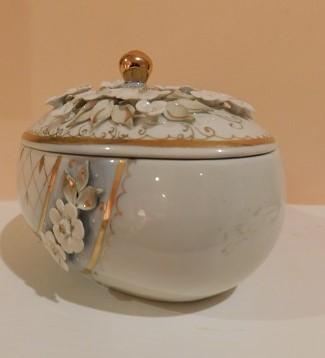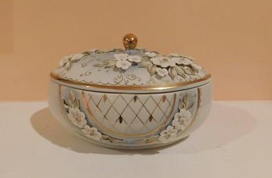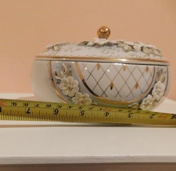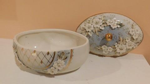 Fenix German Ceramic Lidded Dish 7"x4" could expect to have marks or a chip in flower petal but not initially seen at time of photo