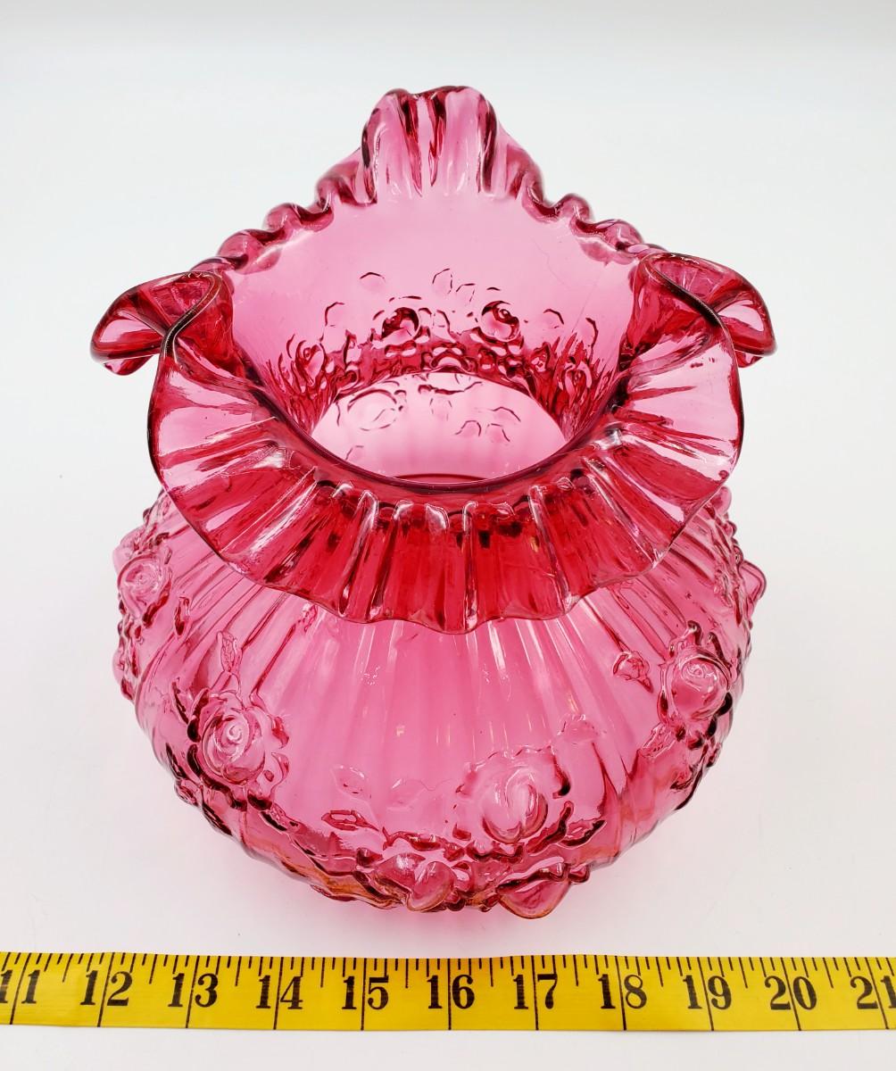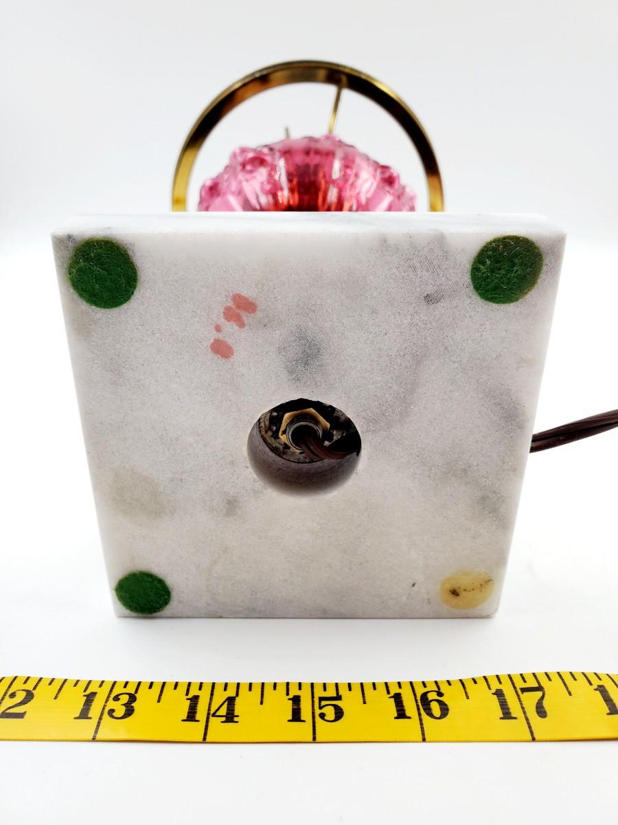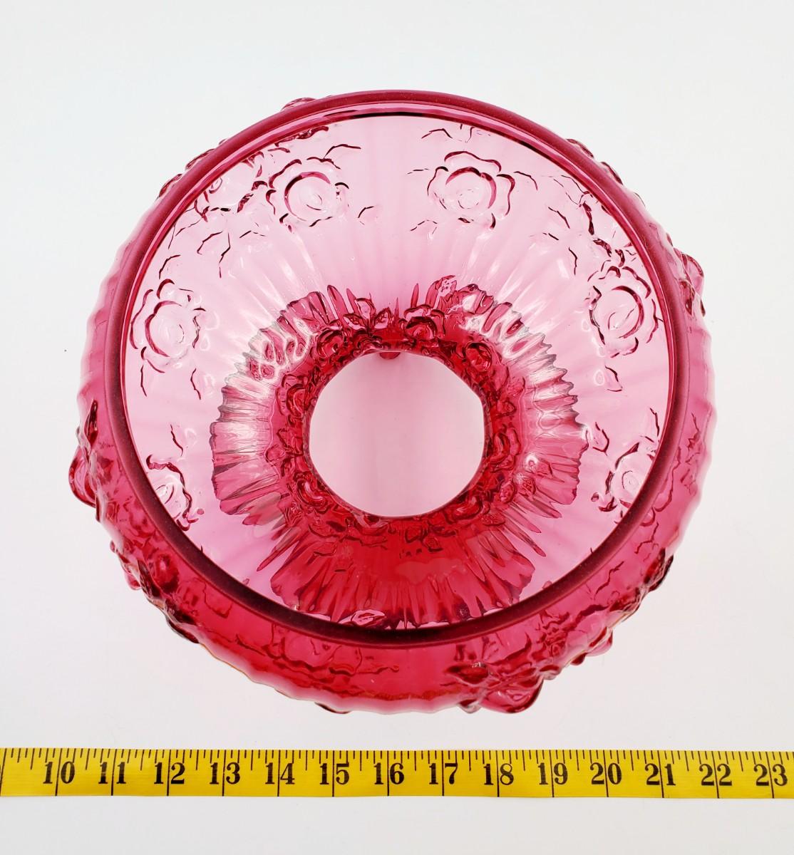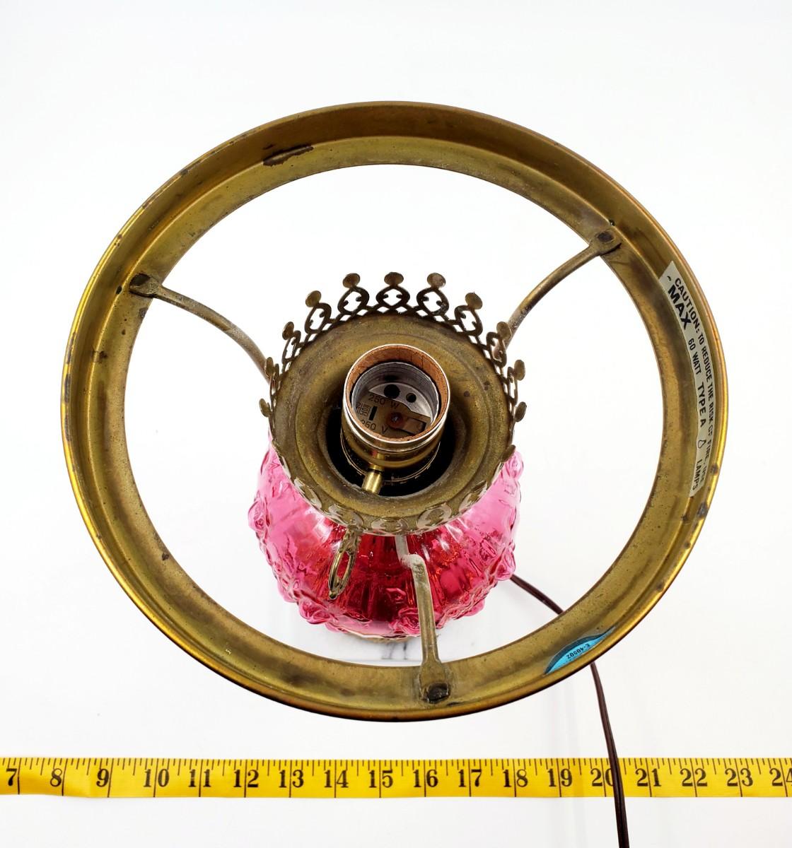 Amazing Fenton "Rose" pattern cranberry colored glass lamp. Very good condition. Metal base on top of what may be marble, approximately 19.5in tall.. Please see photos.