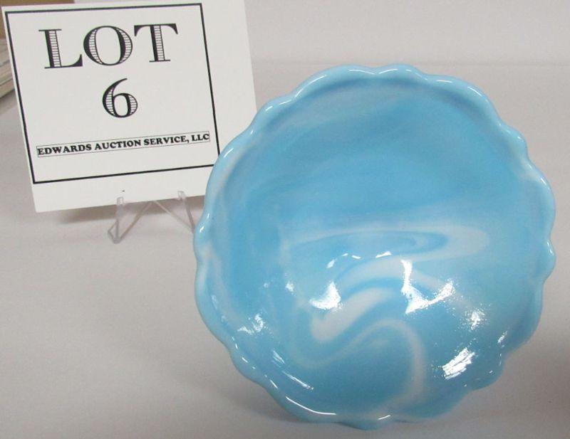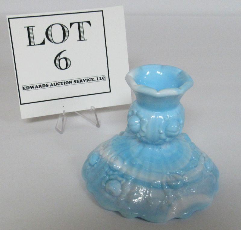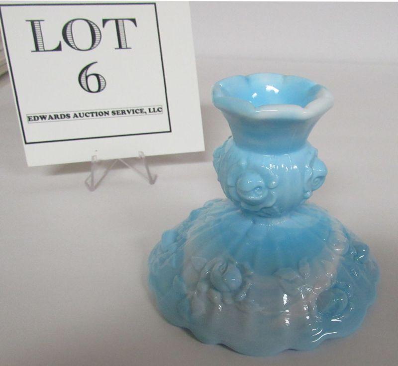 Fenton Blue Slag Cabbage Rose Candle Holder Unsigned