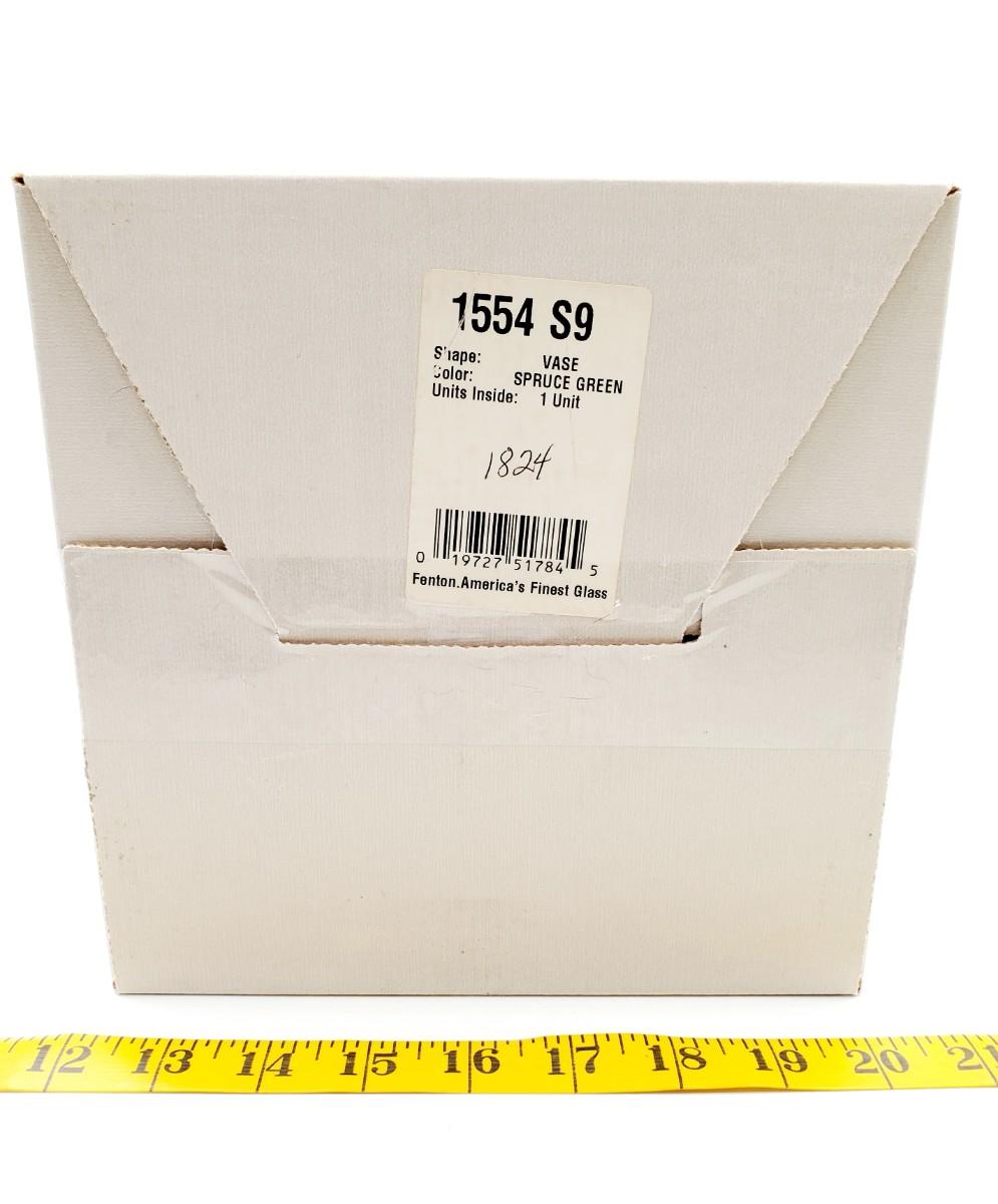 FENTON 1995 FAMILY SIGNATURE SERIES SPRUCE GREEN VASE WITH ORIGINAL BOX