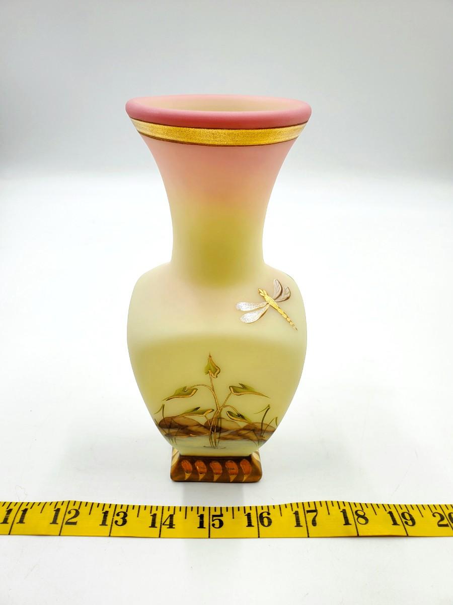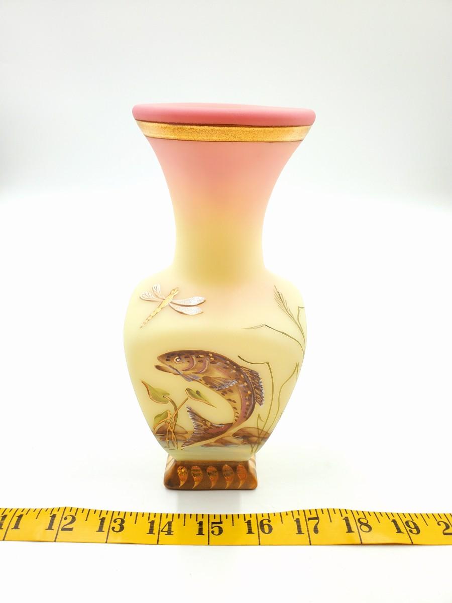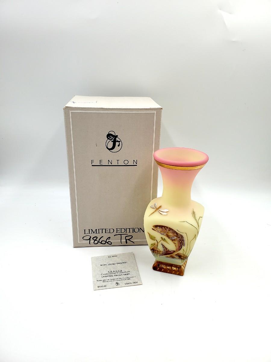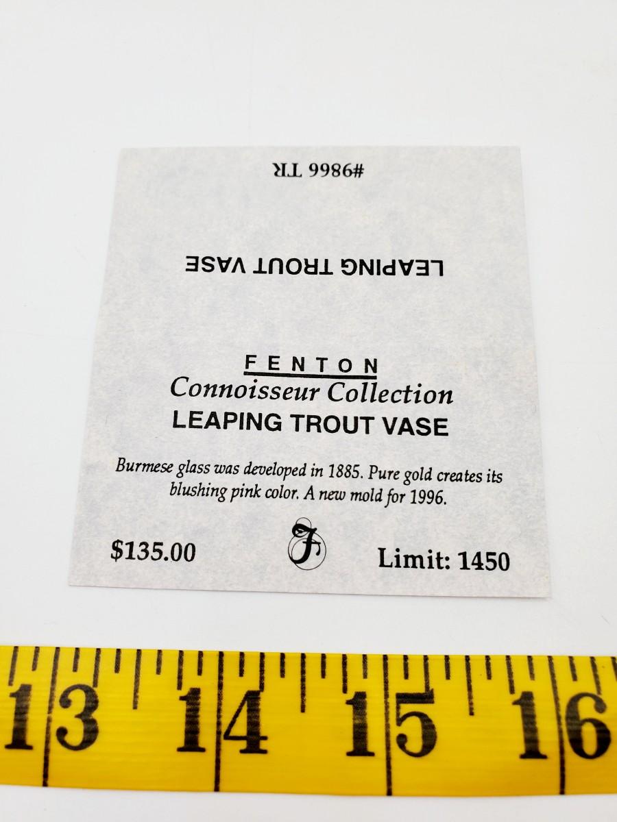 FENTON 1996 CONNOISSEUR COLLECTION "LEAPING TROUT VASE" BURMESE LIMITED EDITION WITH ORIGINAL BOX
