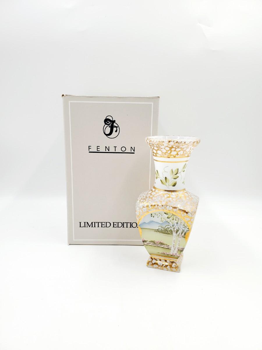 FENTON 1997 CONNOISSEUR COLLECTION "TRANQUILITY" SQUARE VASE WITH ORIGINAL BOX