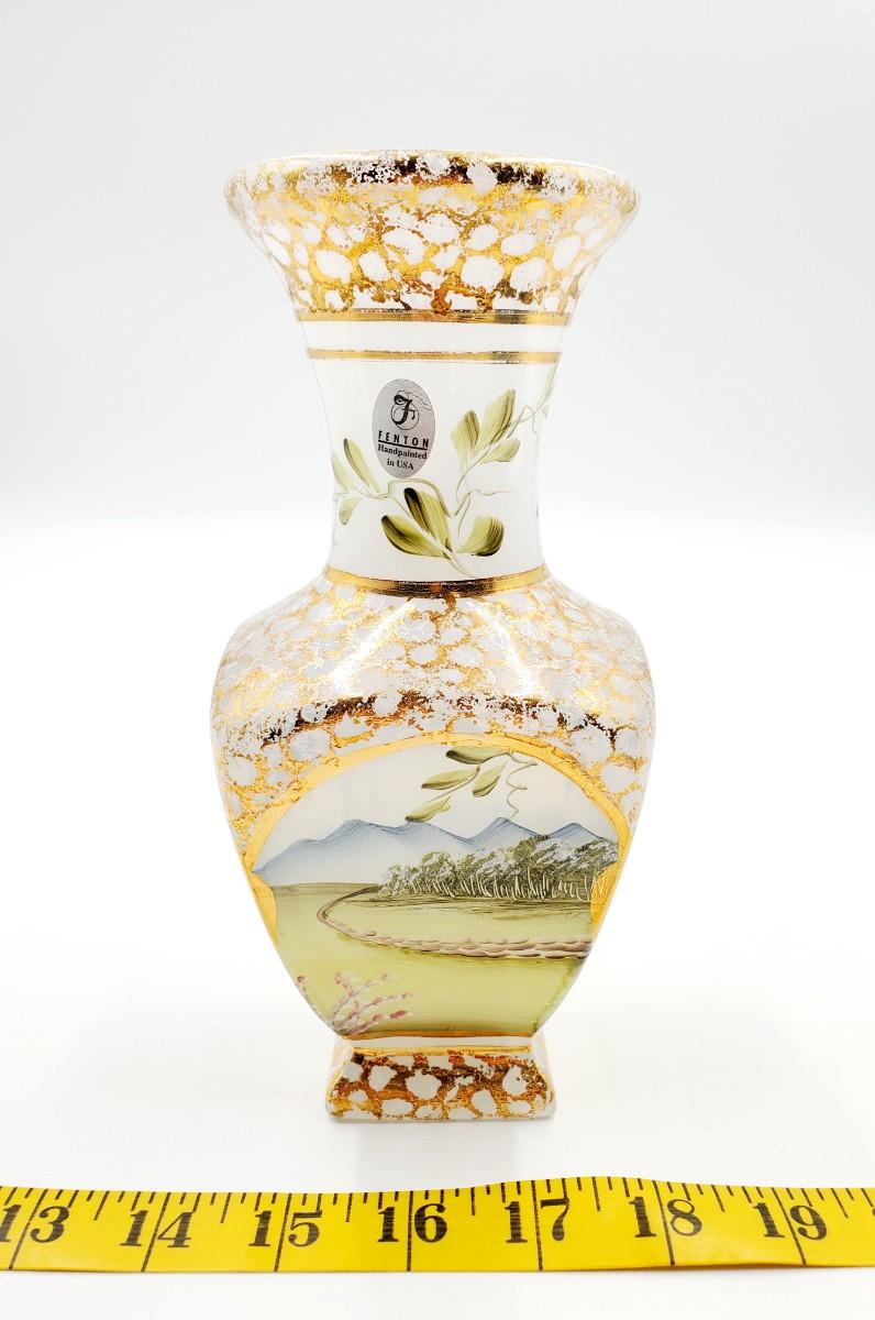 Beautiful and tranquil, 1997 Fenton signed vase in very good condition. Original box included, has been written on but otherwise good condition.