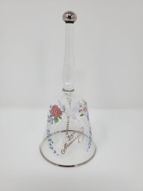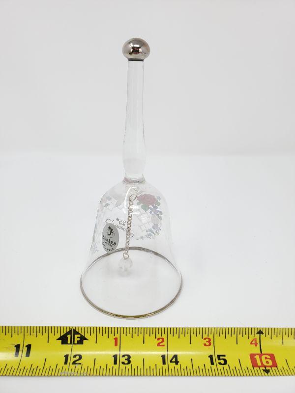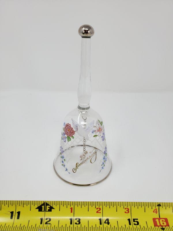 Fenton 25th anniversary glass bell, trim is silver and it has rubbed off in very small amounts around the rim.