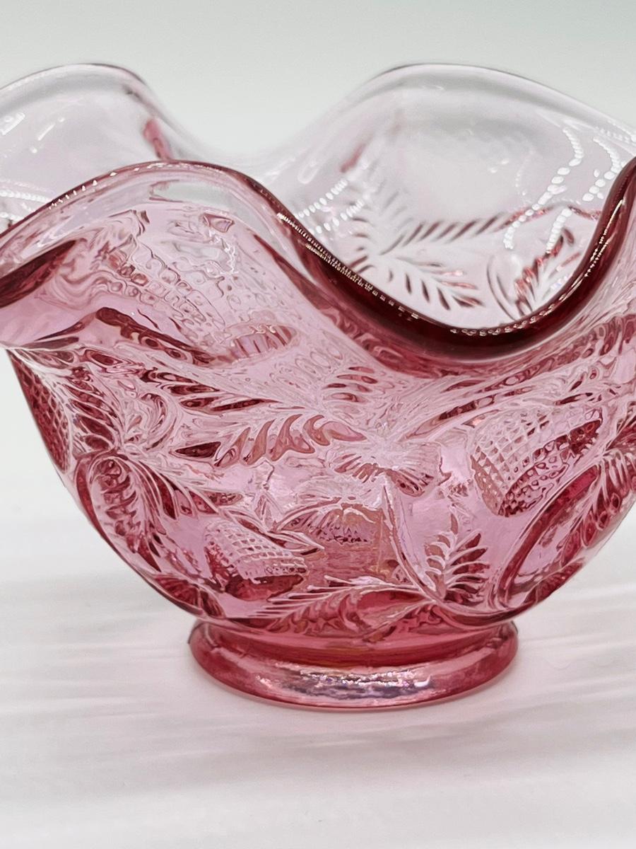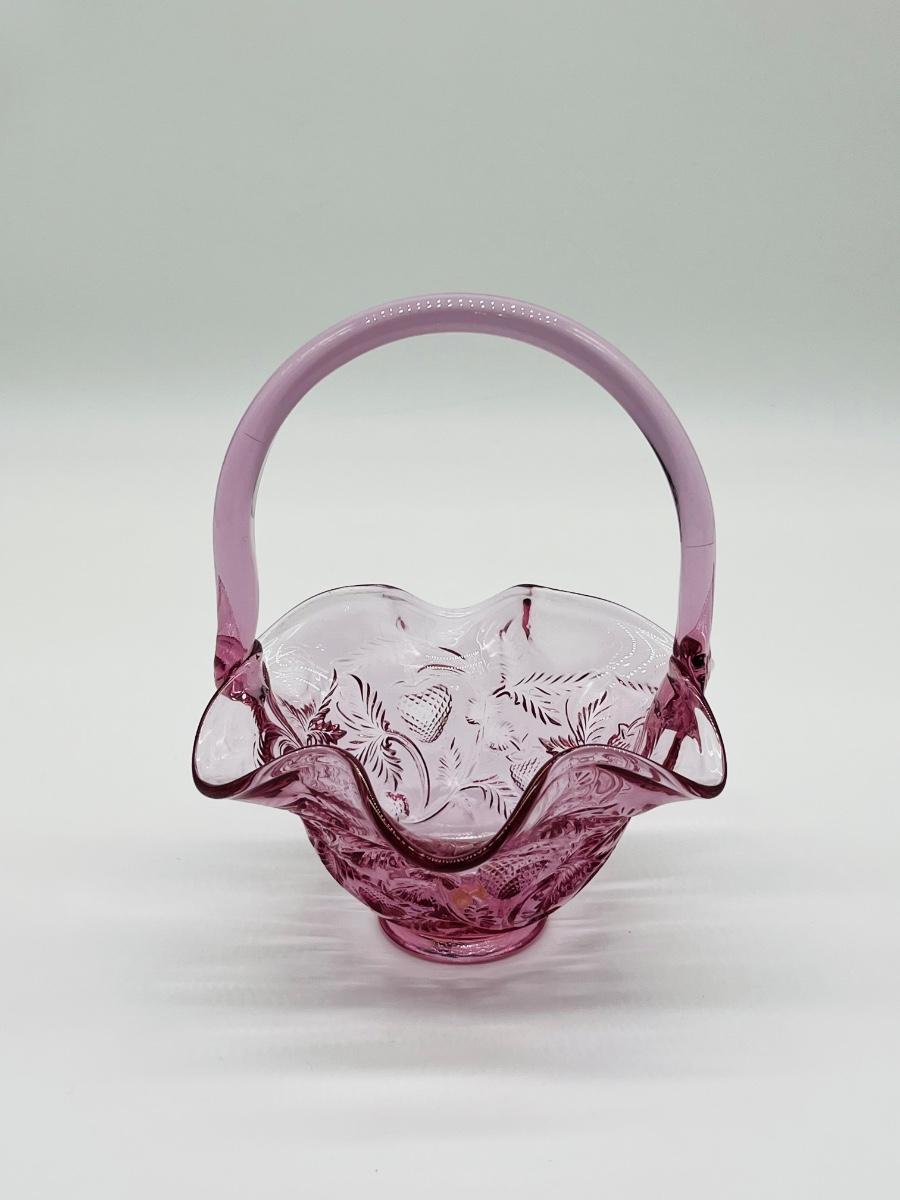 FENTON ~ Glass Dusty Rose ~ Basket With Strawberry