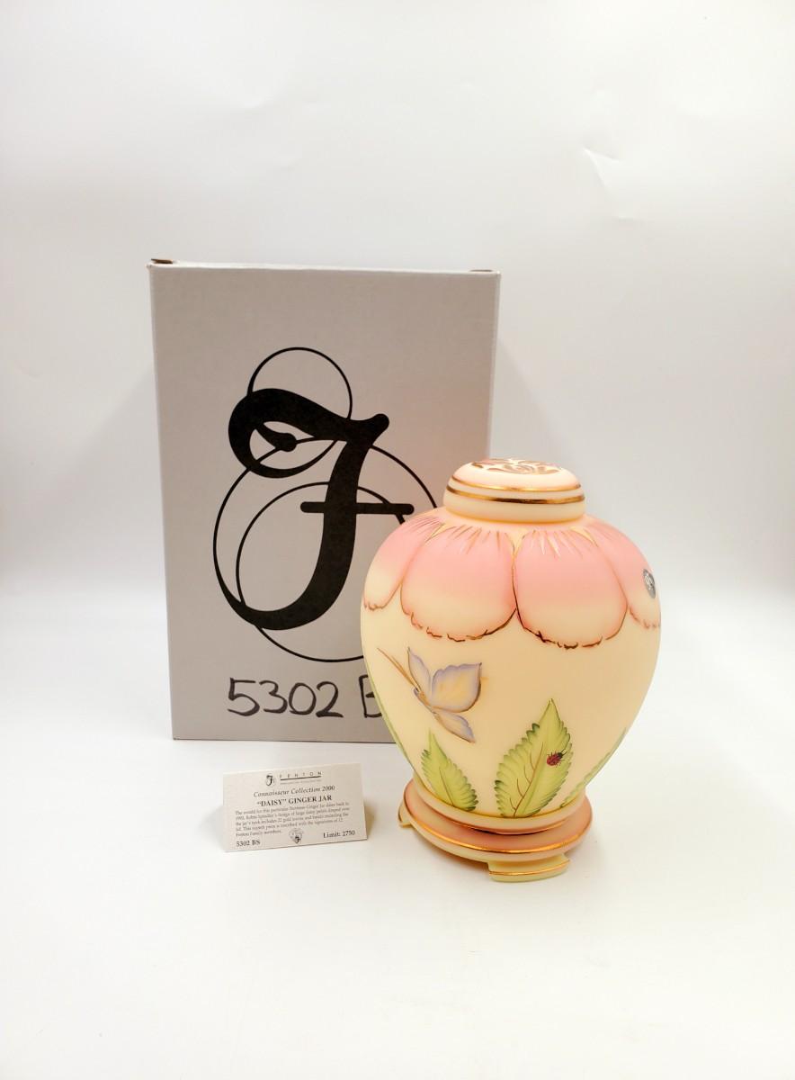 FENTON CONNOISSEUR COLLECTION 8" DAISY GINGER JAR WITH STAND WITH ORIGINAL BOX