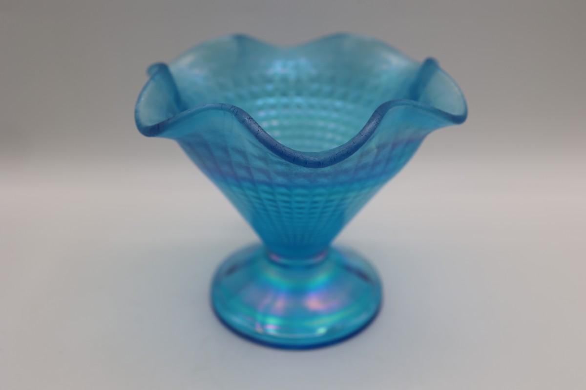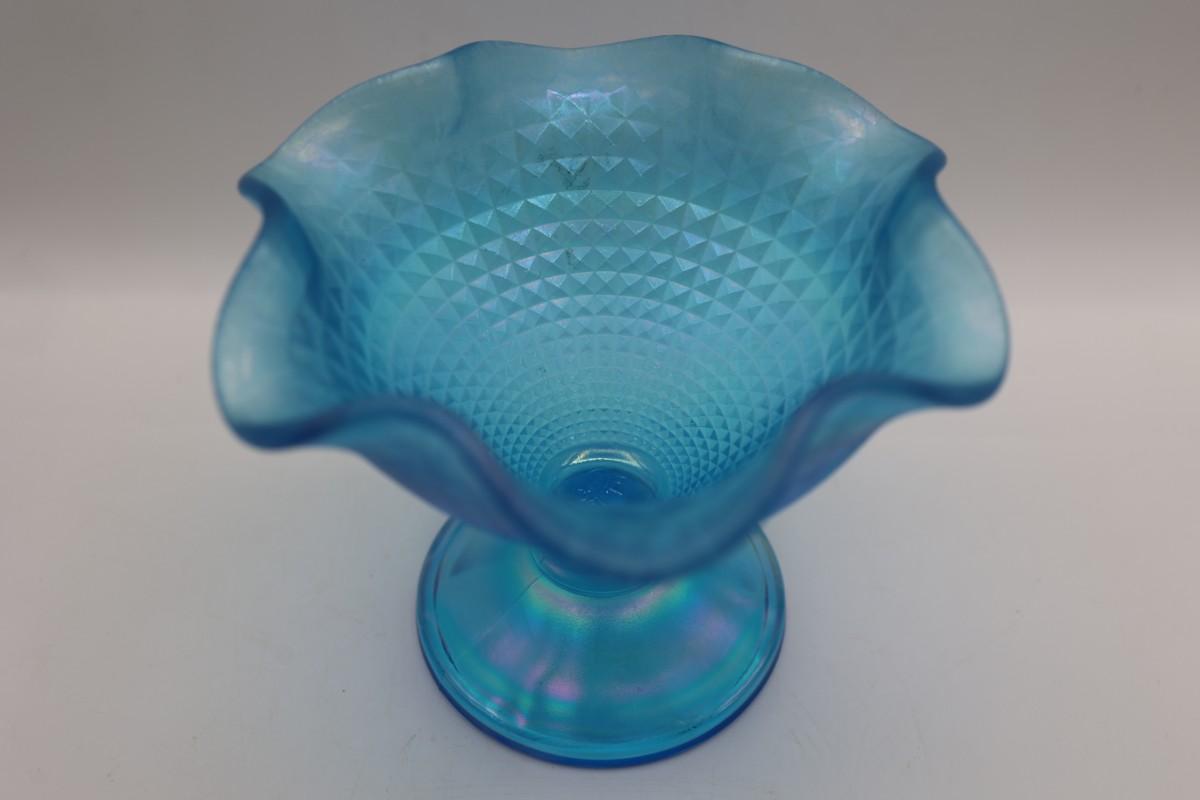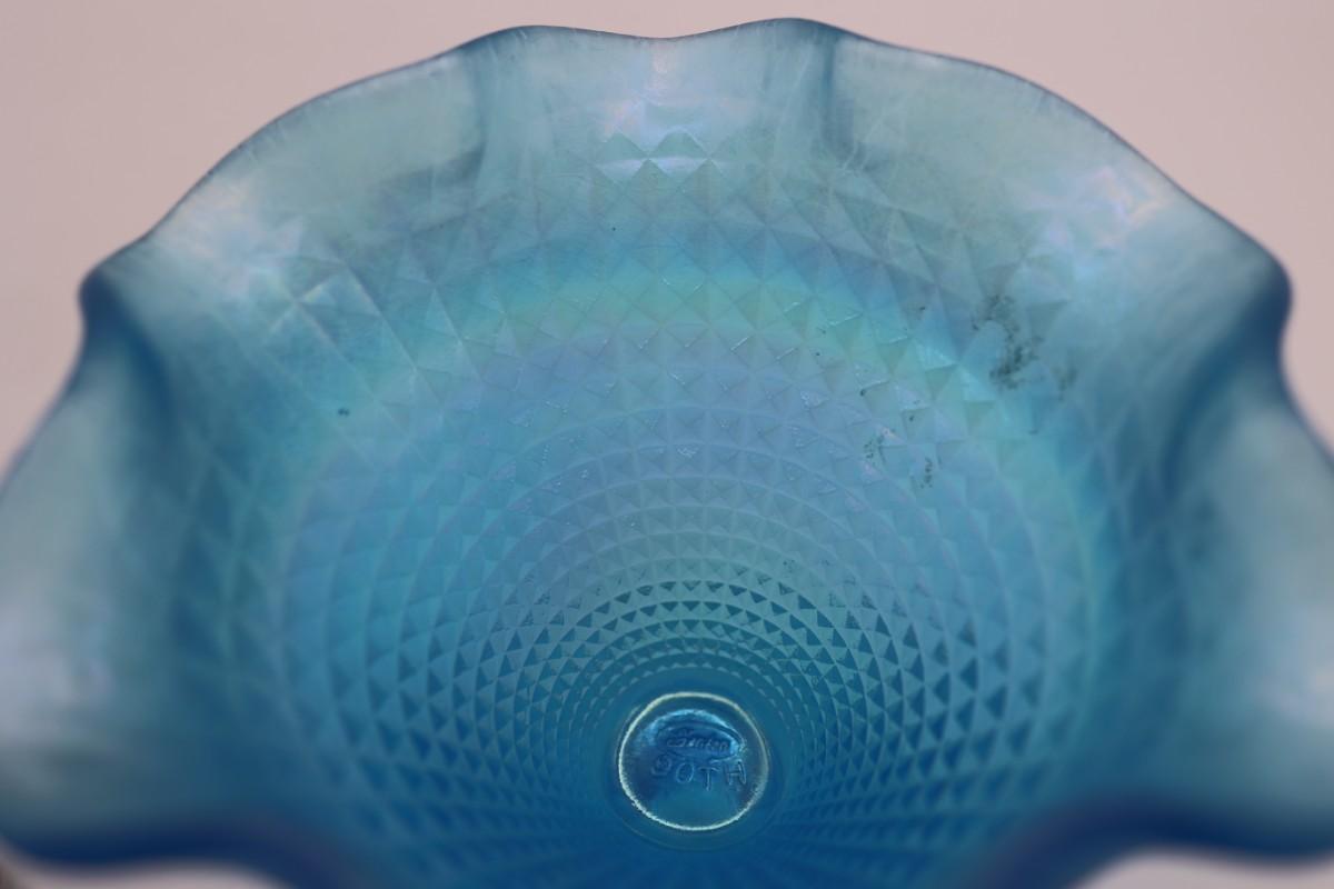 FENTON 90th Anniversary Blue Iridescent Compote/Candy Dish
