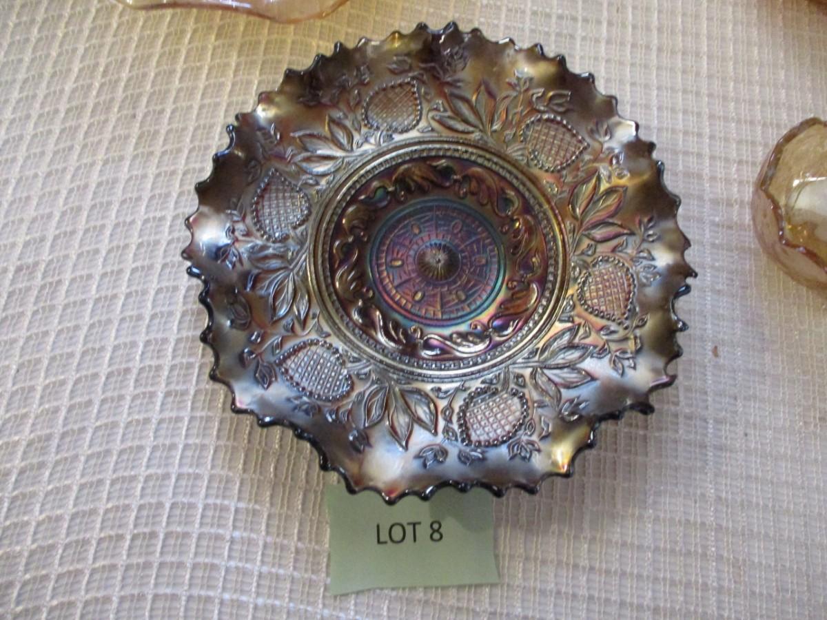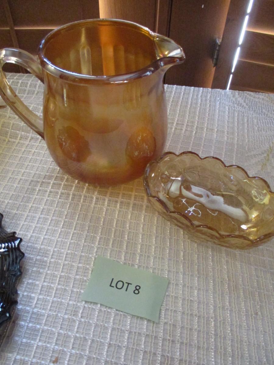 Fenton Amethyst Bowl & Light Amber Pitcher, Bowl, & Candy Dish