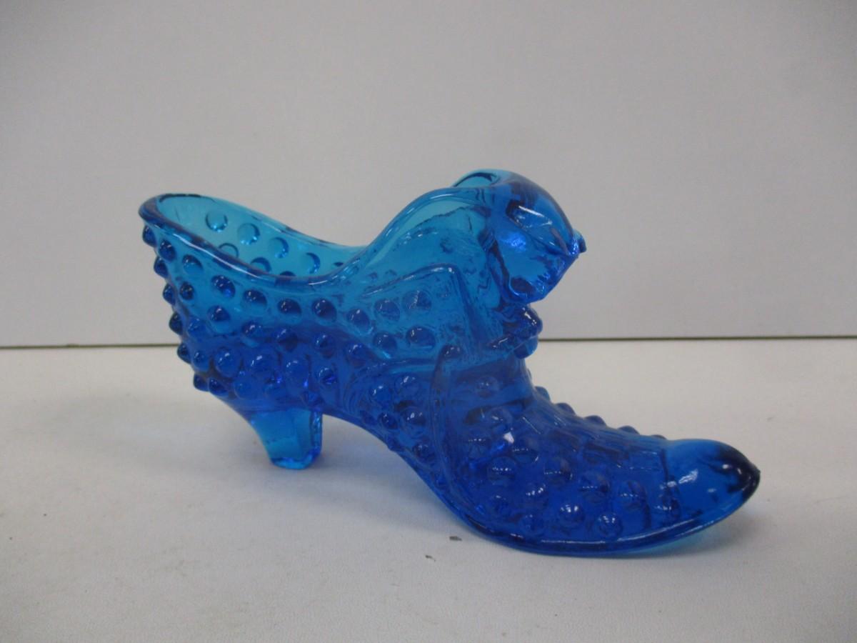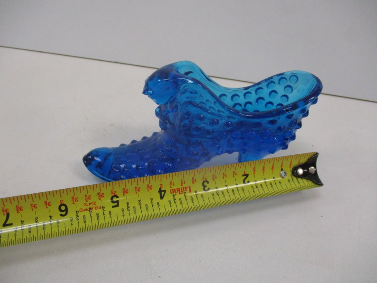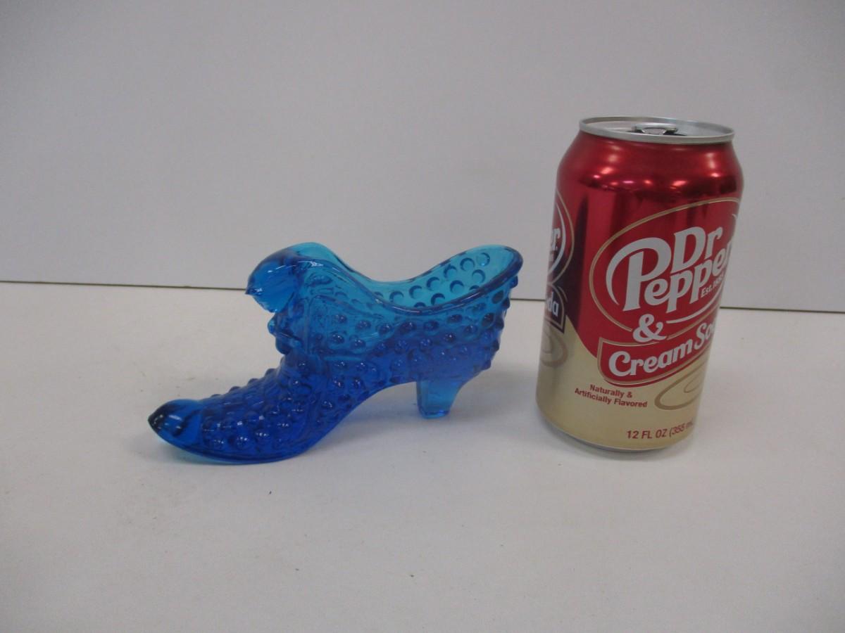 Fenton Art Glass Blue Cat Head Hobnail Shoe