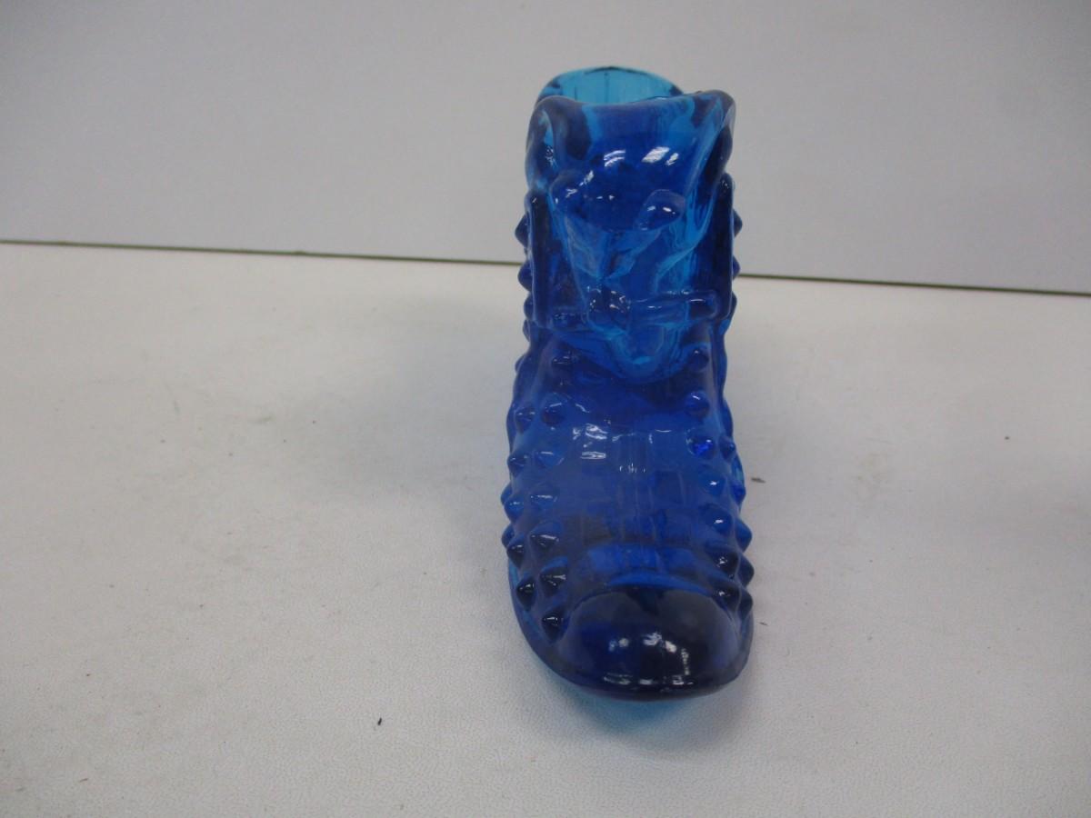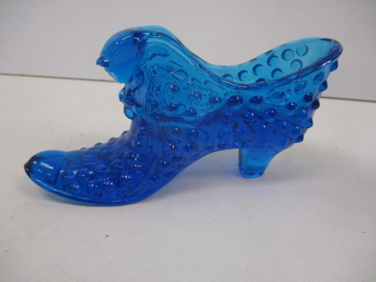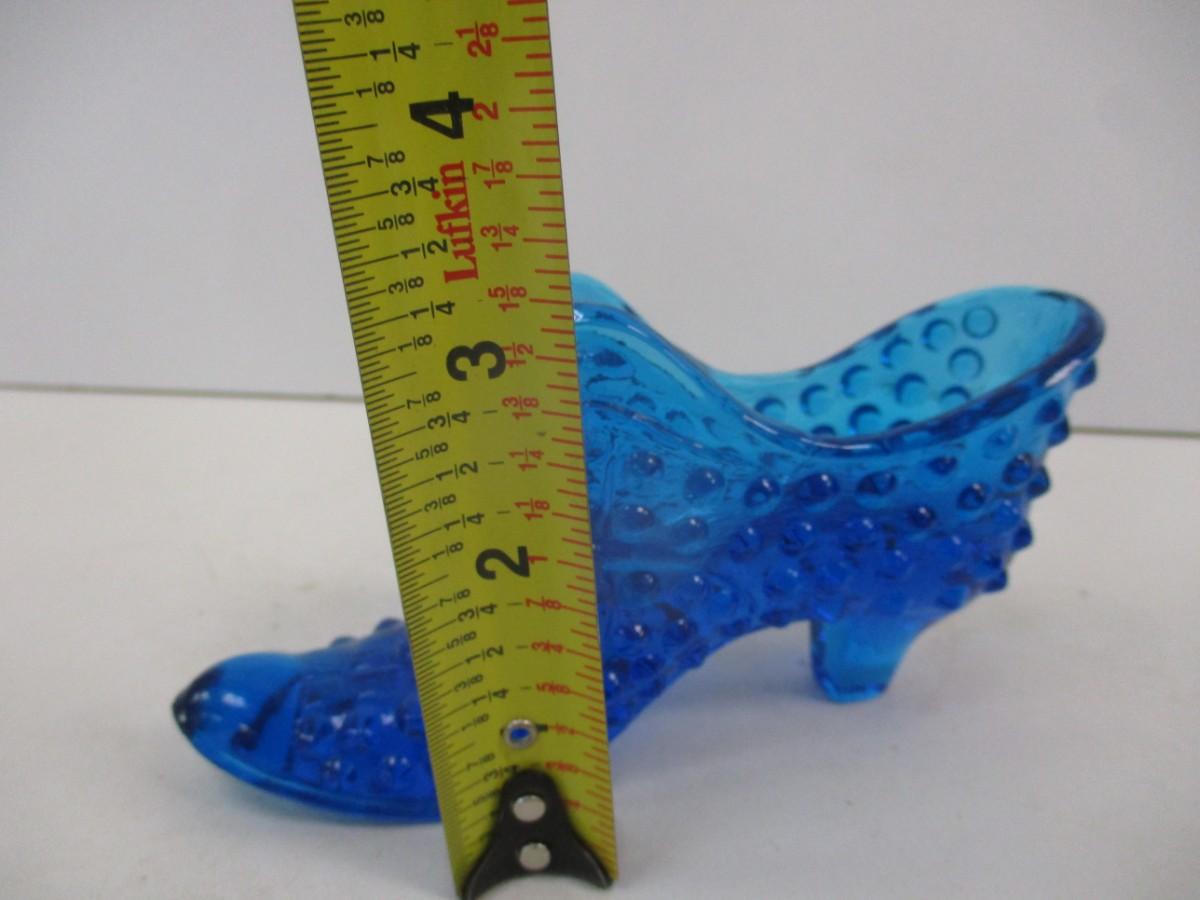 Fenton Art Glass Blue Cat Head Hobnail Shoe