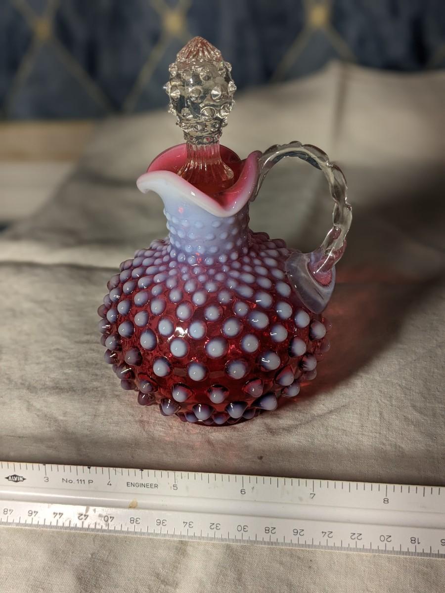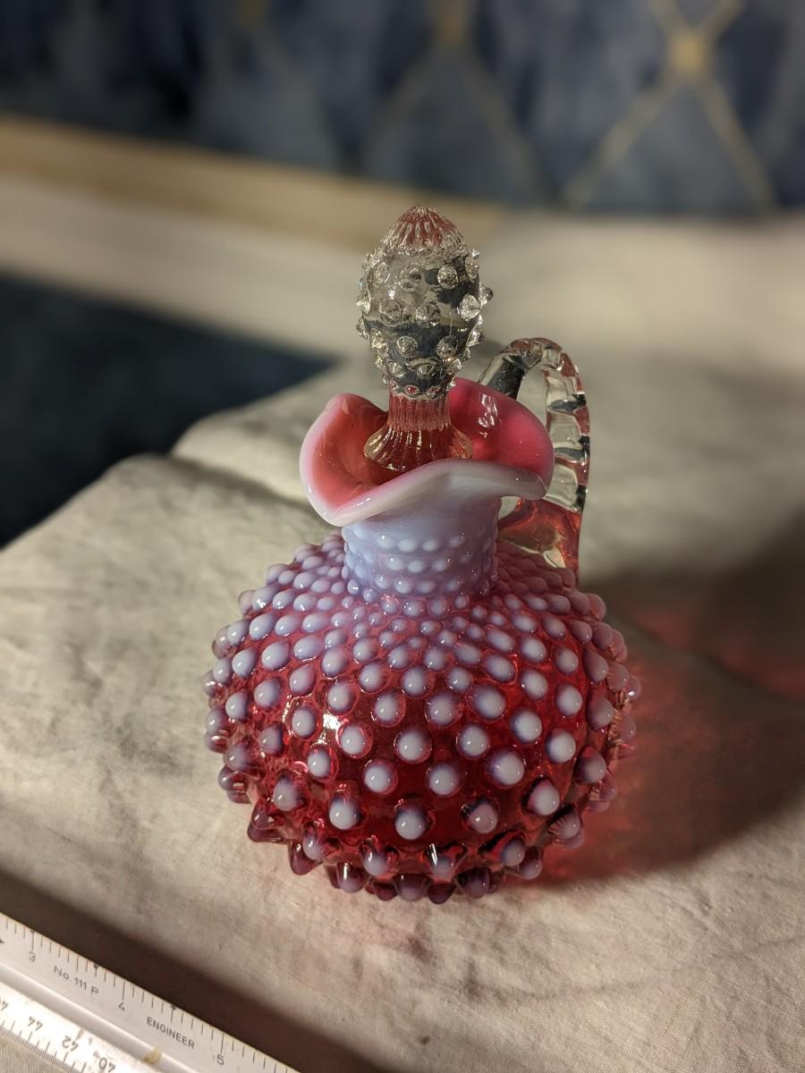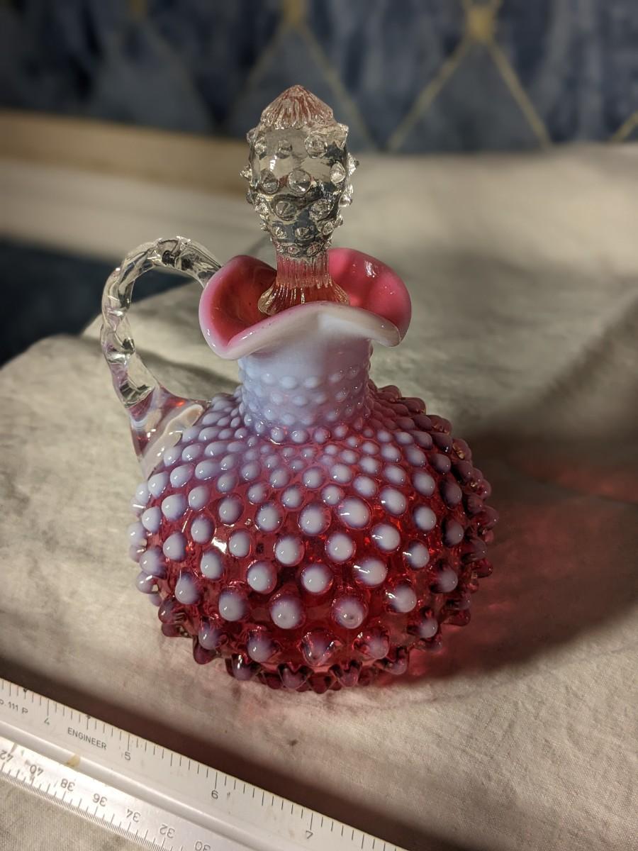 Fenton Art Glass Cranberry Opalescent 6" Hobnail Cruet