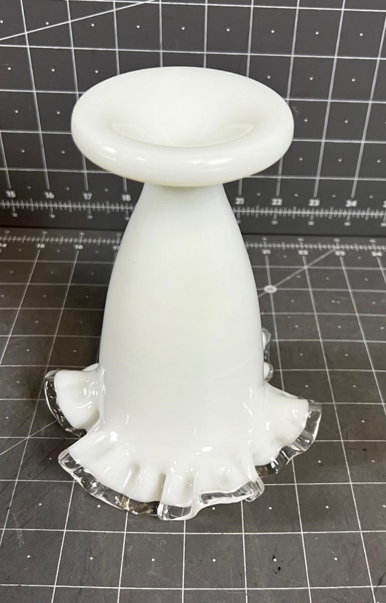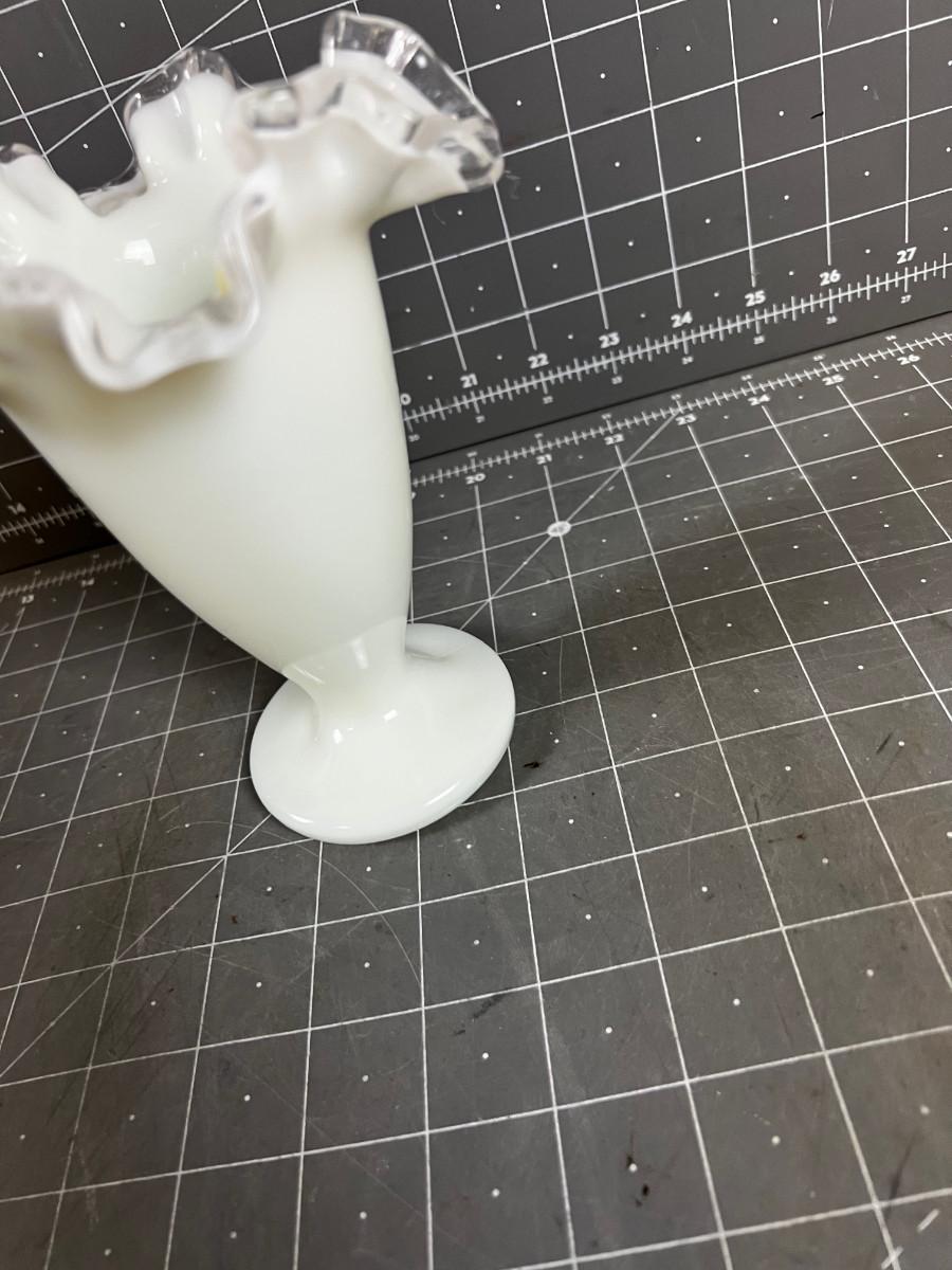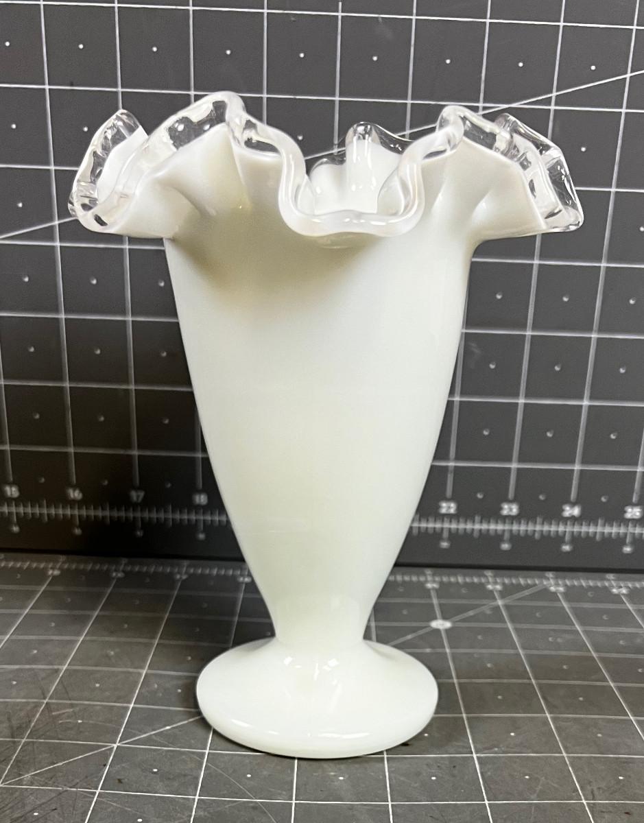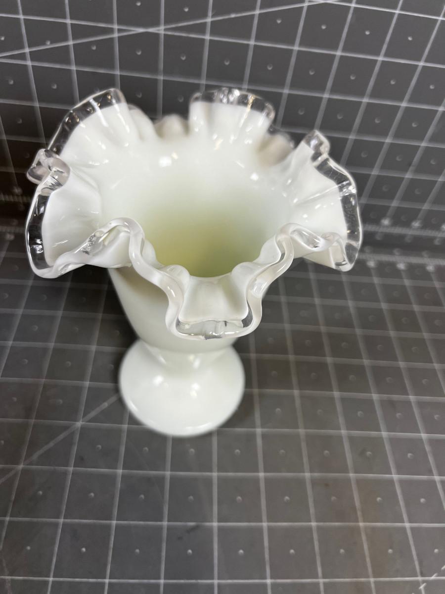 In excellent condition...from the estate of a Fenton Art Glass collector here is a 6 1/4" Silver Crest Vase...handcrafted circa 1970-71?...Ware No. 7356 SC...Offered with no reserve...
