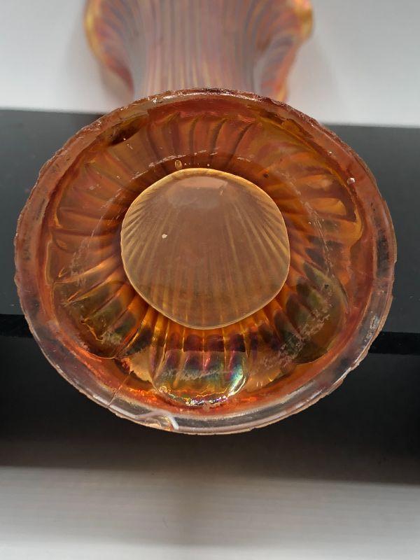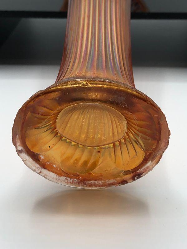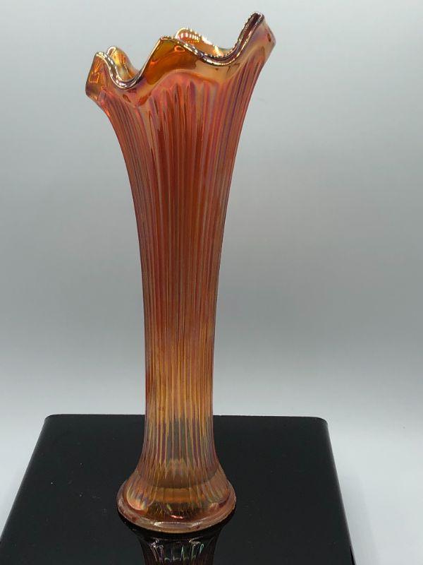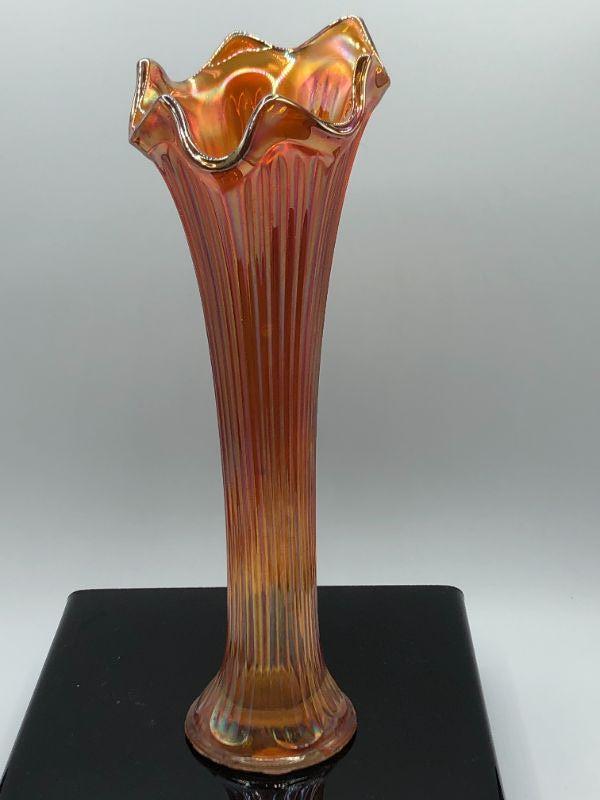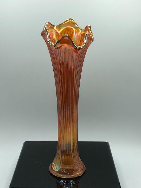 Fenton Art Glass Vase, Fiery Orange Red with ribbed sides and fluted mouth