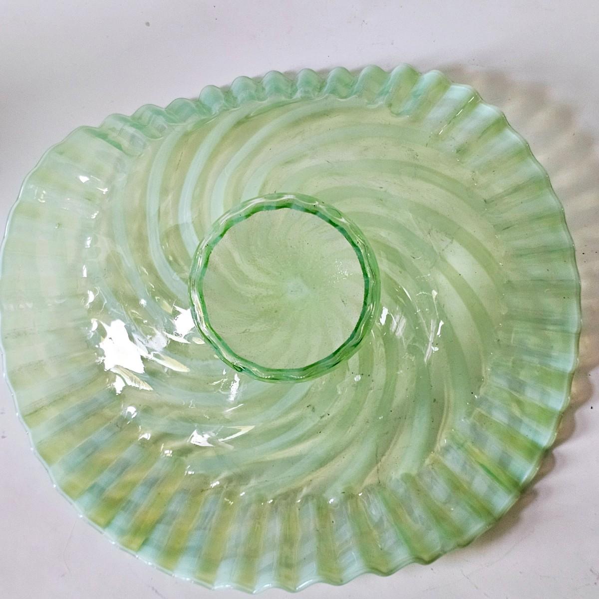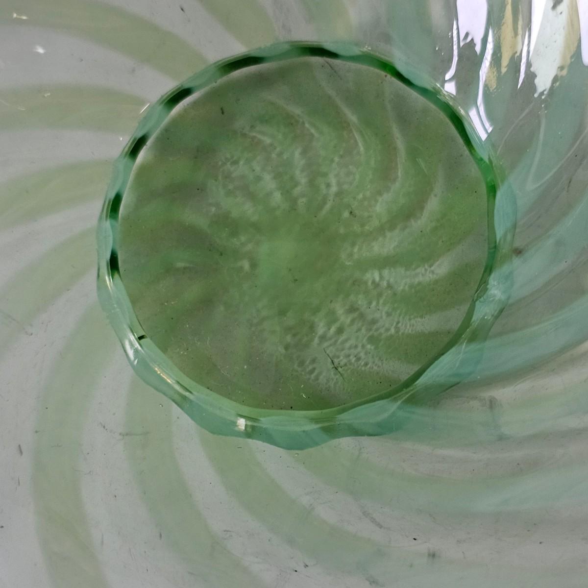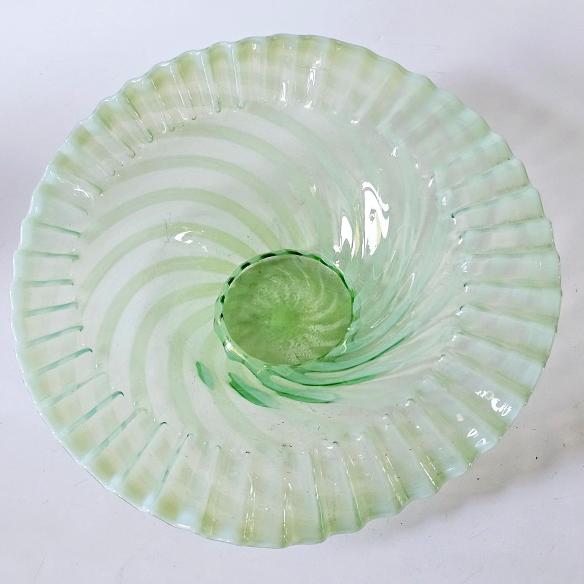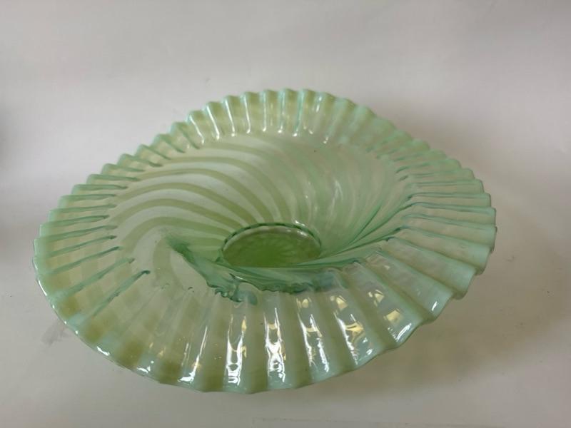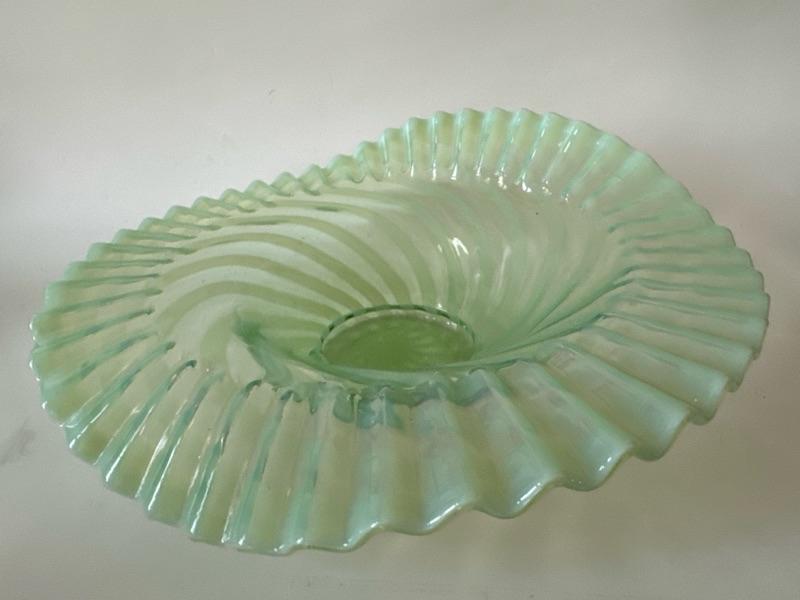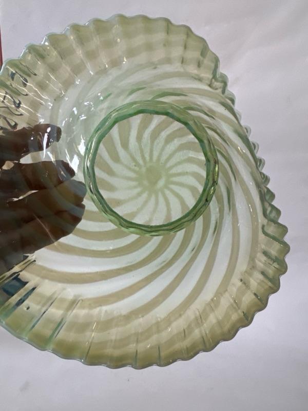 Fenton Art Glass Vaseline in Pulpit Spiral Optic ruffled bowl Lime Green