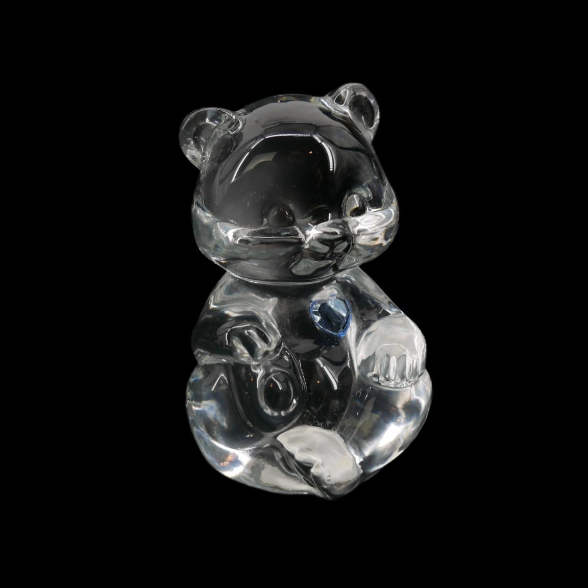 Fenton glass bear figurine with blue heart. Such a sweet, adorable piece. Measures 2" x 2" x 3.75", weighs 11 oz. No issues found.